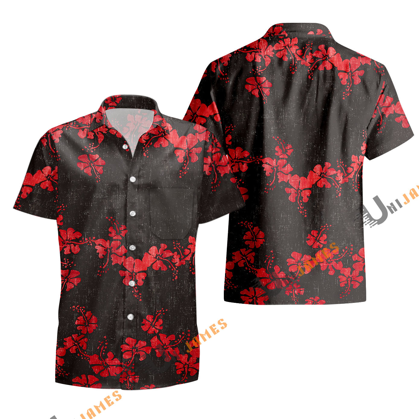 UniJames 50th State Flower - Black Short Sleeve Hawaiian Shirt