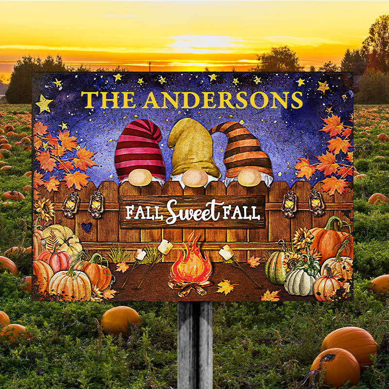 Autumn Gnomes Fall Sweet Fall Custom Classic Metal Signs, Yard Sign, Fall Gift, Fall Decor