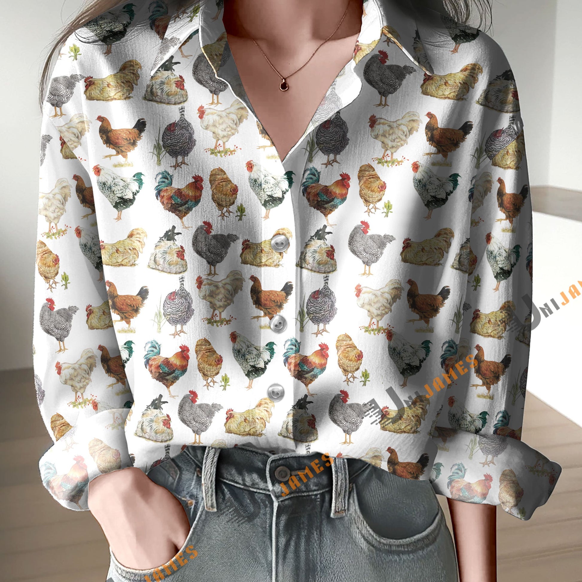 Unique Chicken Pattern Casual Shirt