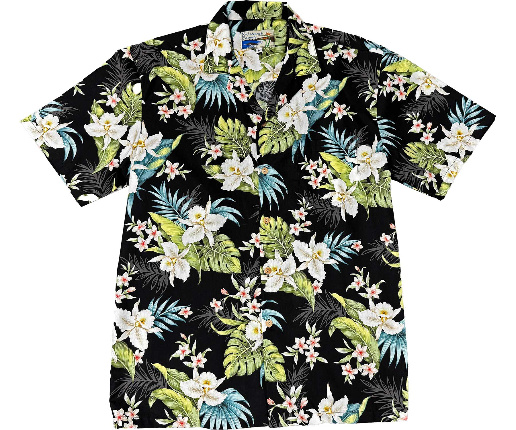 UniJames Cattleya Dream - Black Short Sleeve Hawaiian Shirt
