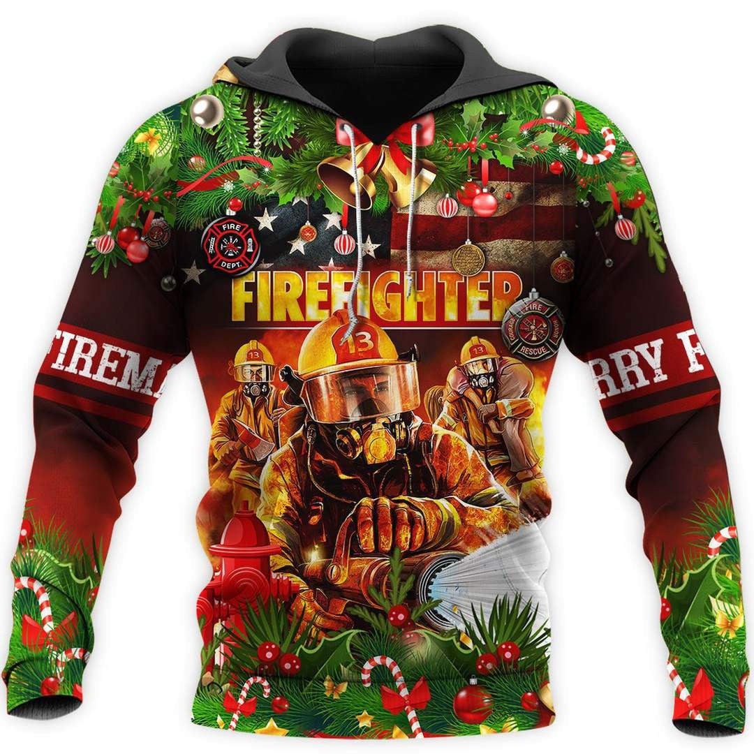 UniJames Christmas Firefighter 3D All Over Printed Shirts Hoodie