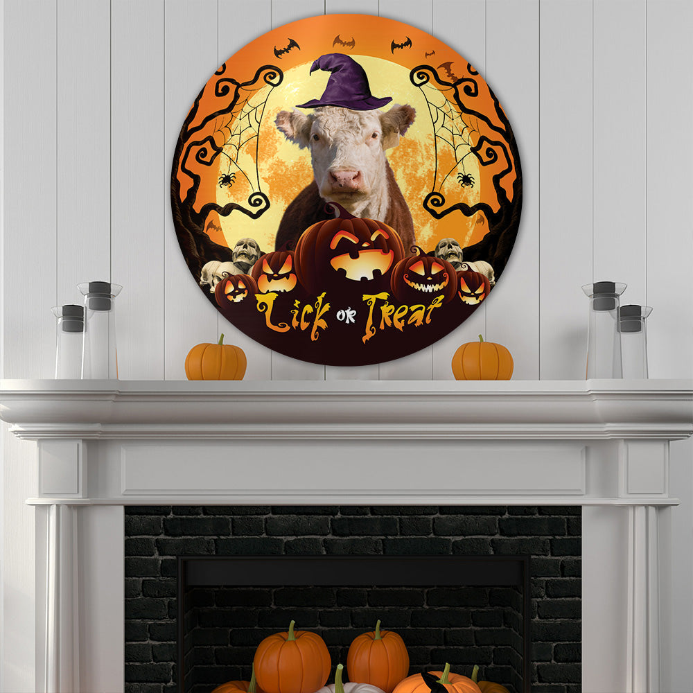 uni Halloween Hereford Cattle All Printed 3D Round Wooden Sign