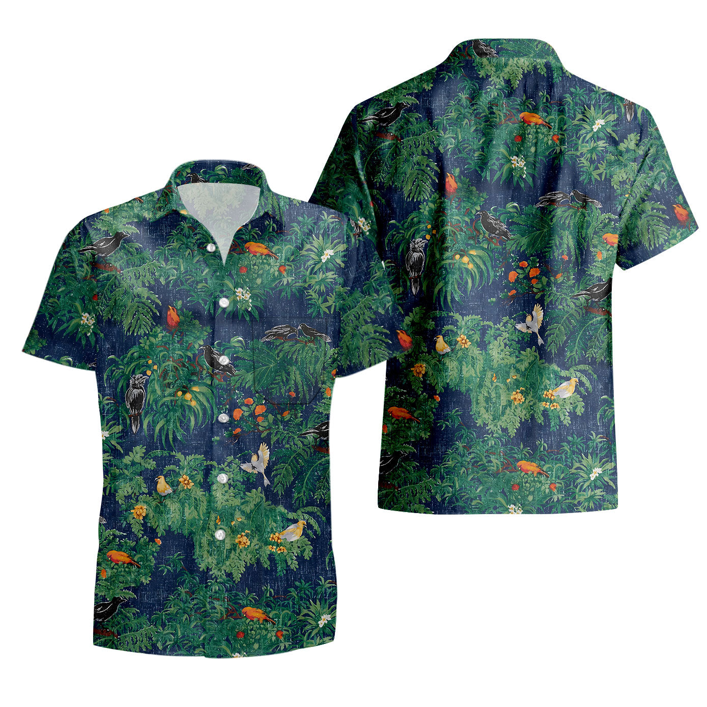 UniJames Endangered Species: Pacific Island Birds - Dress Blues Short Sleeve Hawaiian Shirt