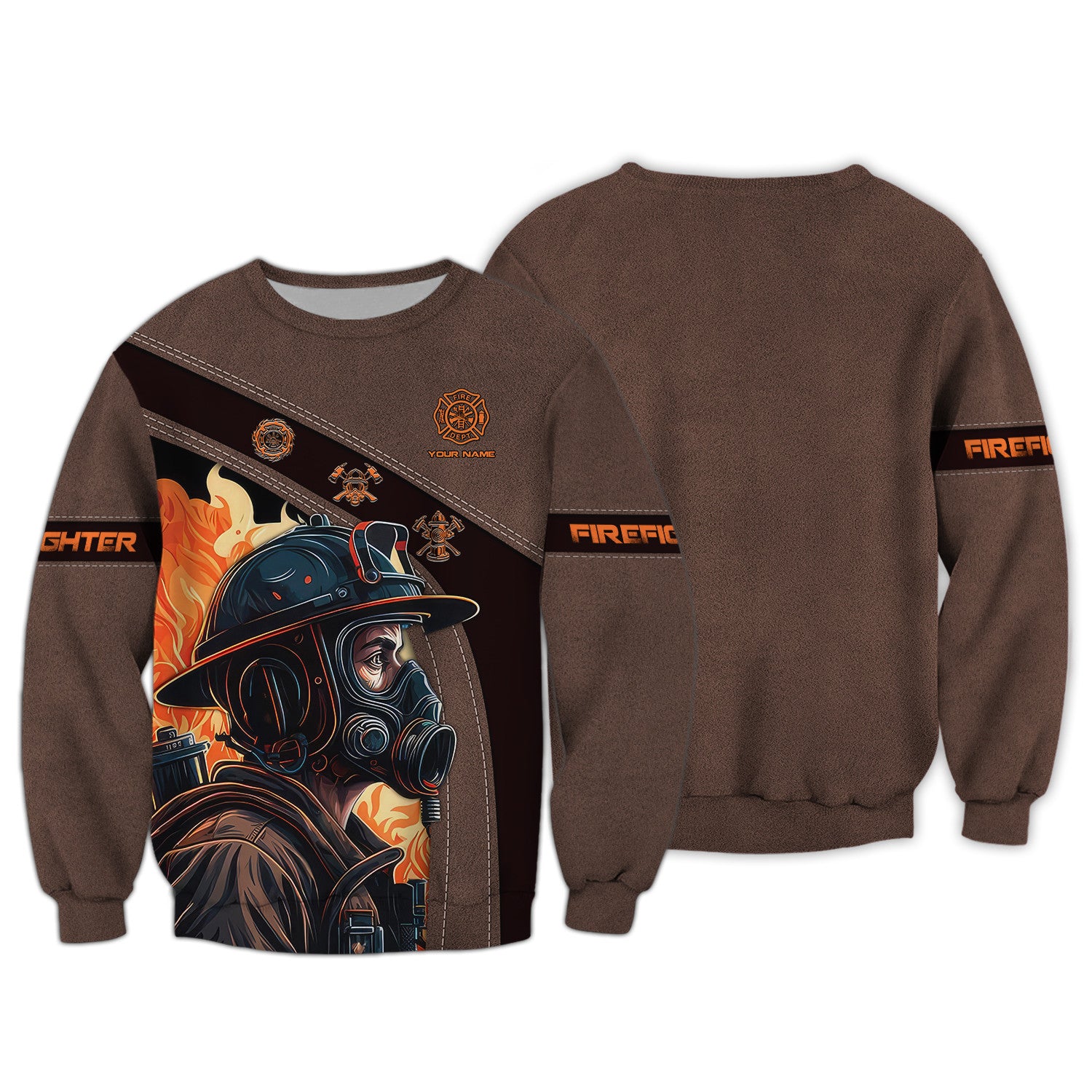 Bold firefighter graphics: Helmets, axes, flames, or patriotic designs that stand out