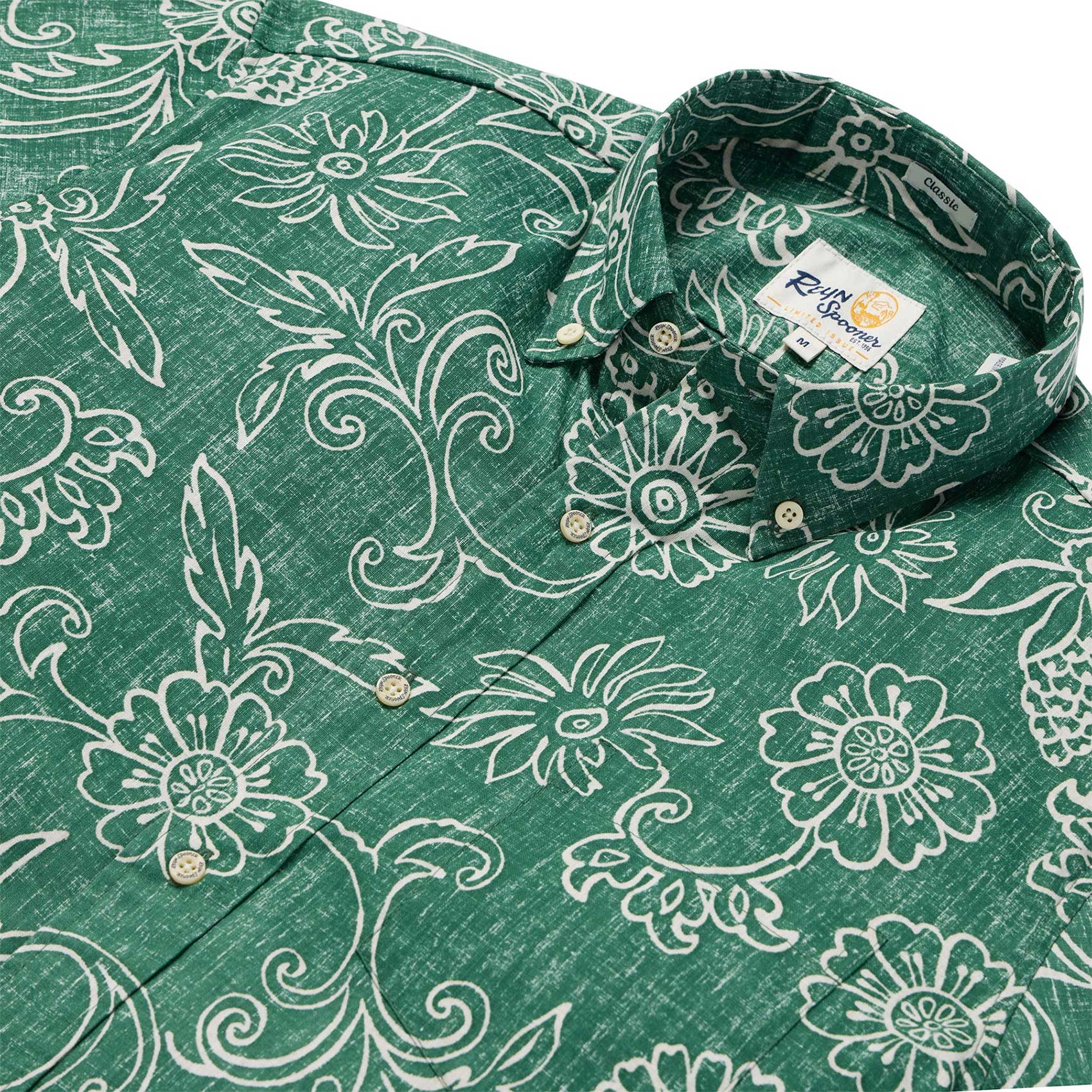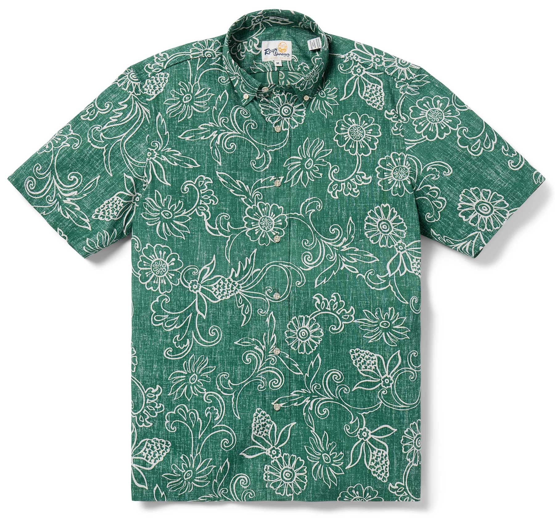 UniJames Hawaiian Gardenias - Pine Short Sleeve Hawaiian Shirt