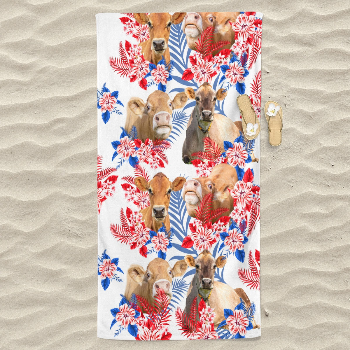 Jersey Cattle Hawaiian Inspiration Beach Towel