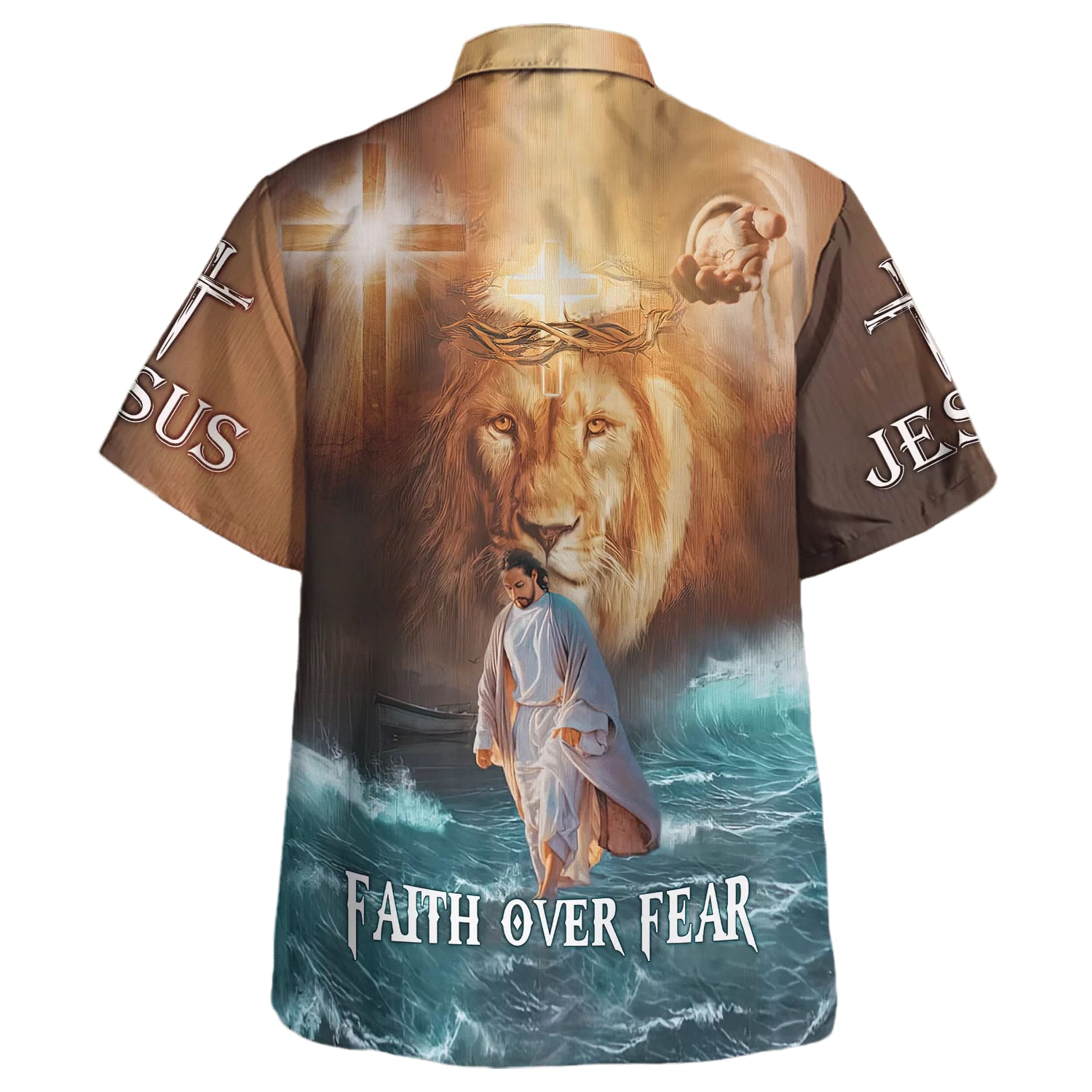 UniJames Jesus Walk On Water Faith Over Fear Hawaiian Shirts For Men & Women - Christian Hawaiian Shirt - Hawaiian Summer Shirts