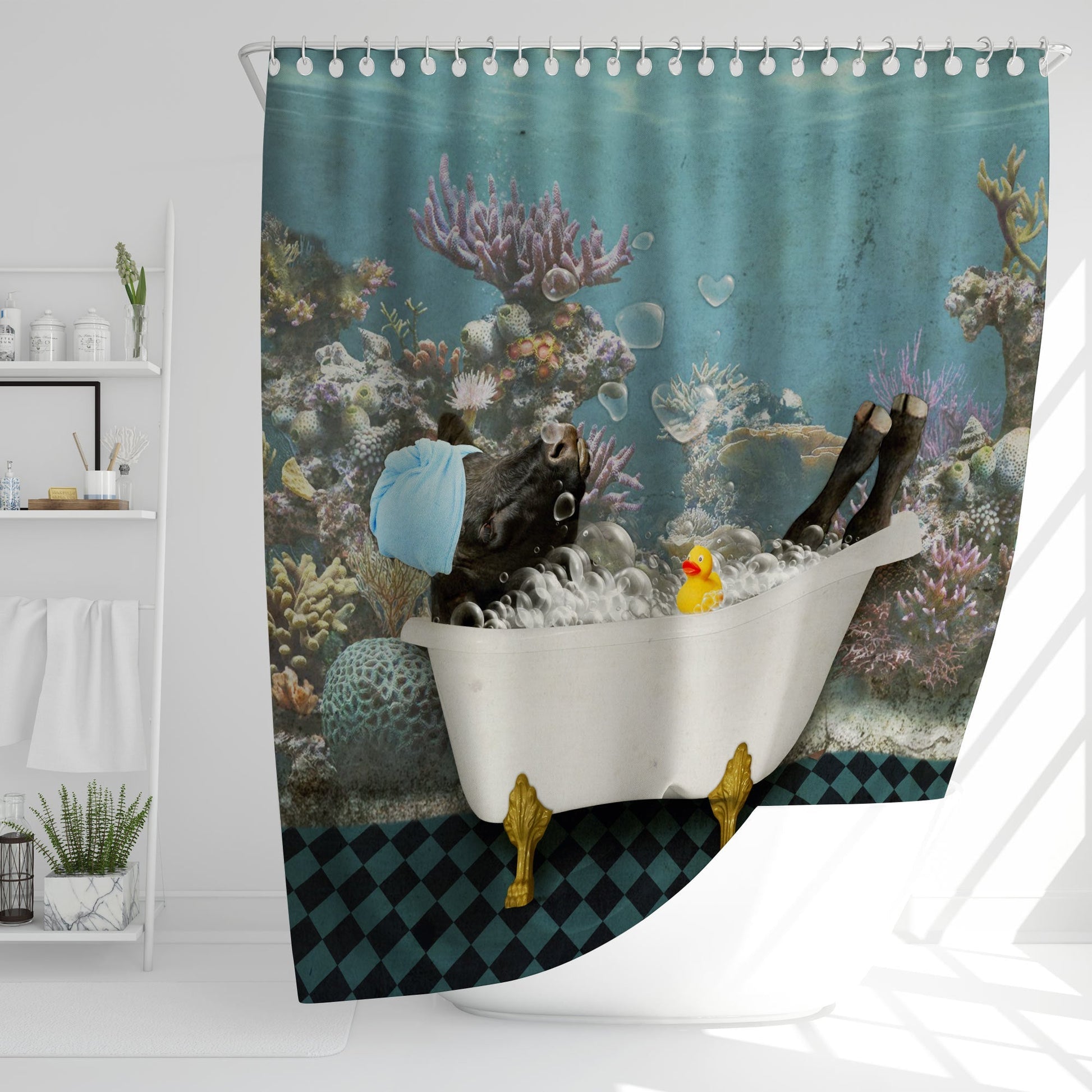 Uni Black Angus Taking Shower Under The Sea 3D Shower Curtain