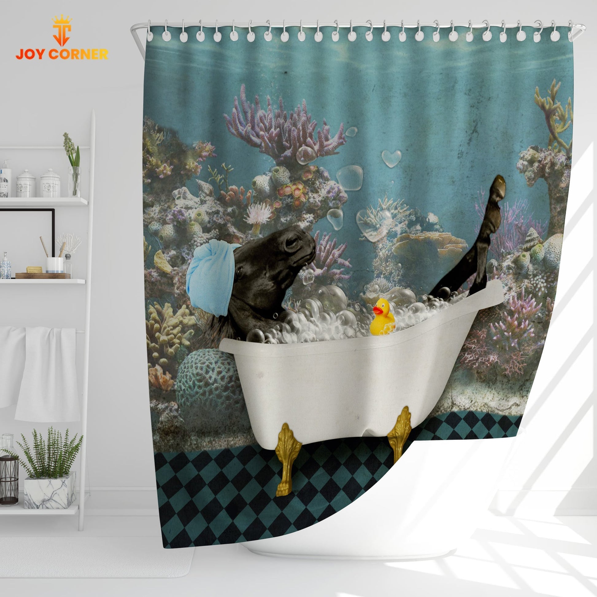 Uni Black Horse Taking Shower Under The Sea 3D Shower Curtain