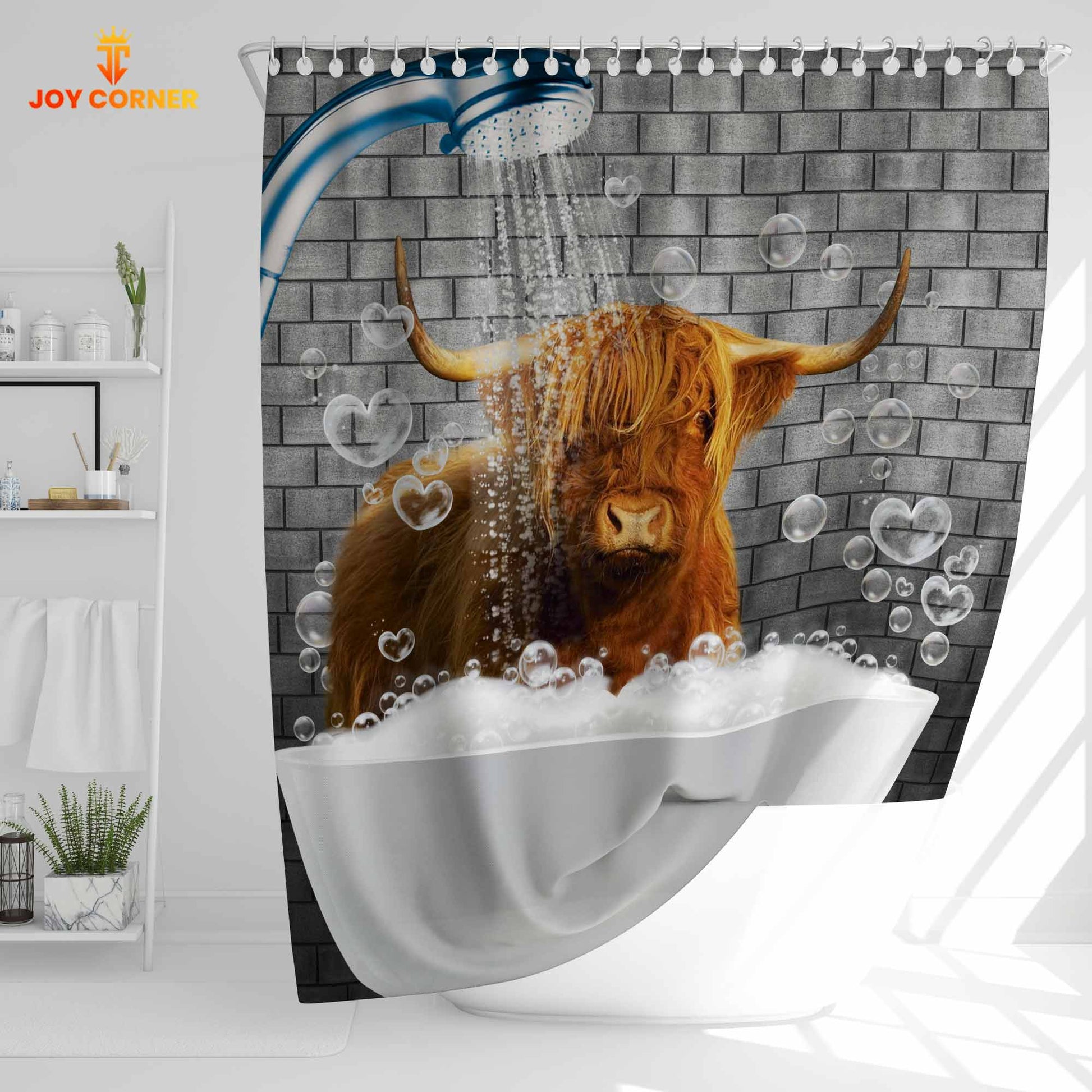 Uni Highland Cattle Brick Wall 3D Shower Curtain