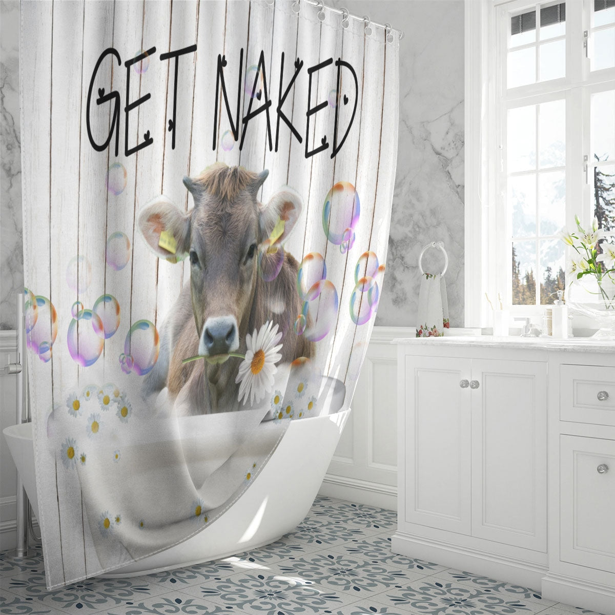 Uni Braunvieh Get Naked Daisy Shower Curtain