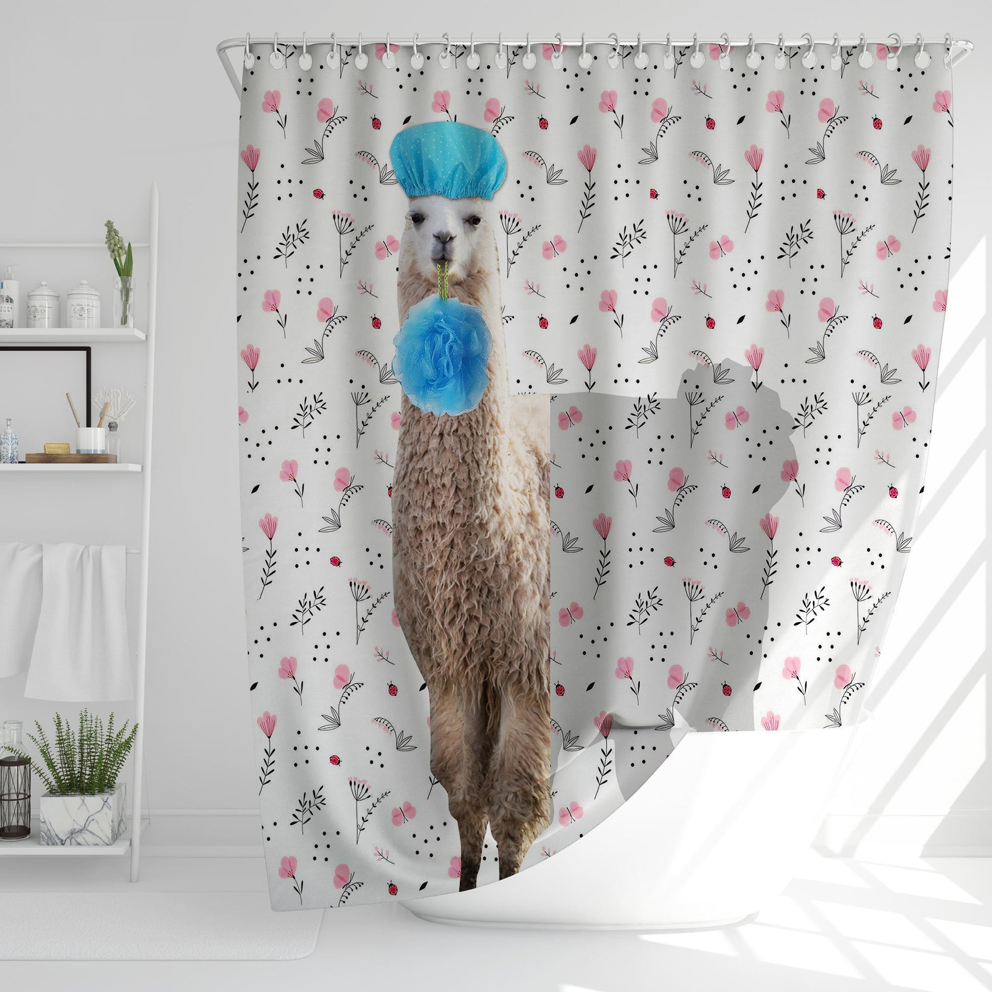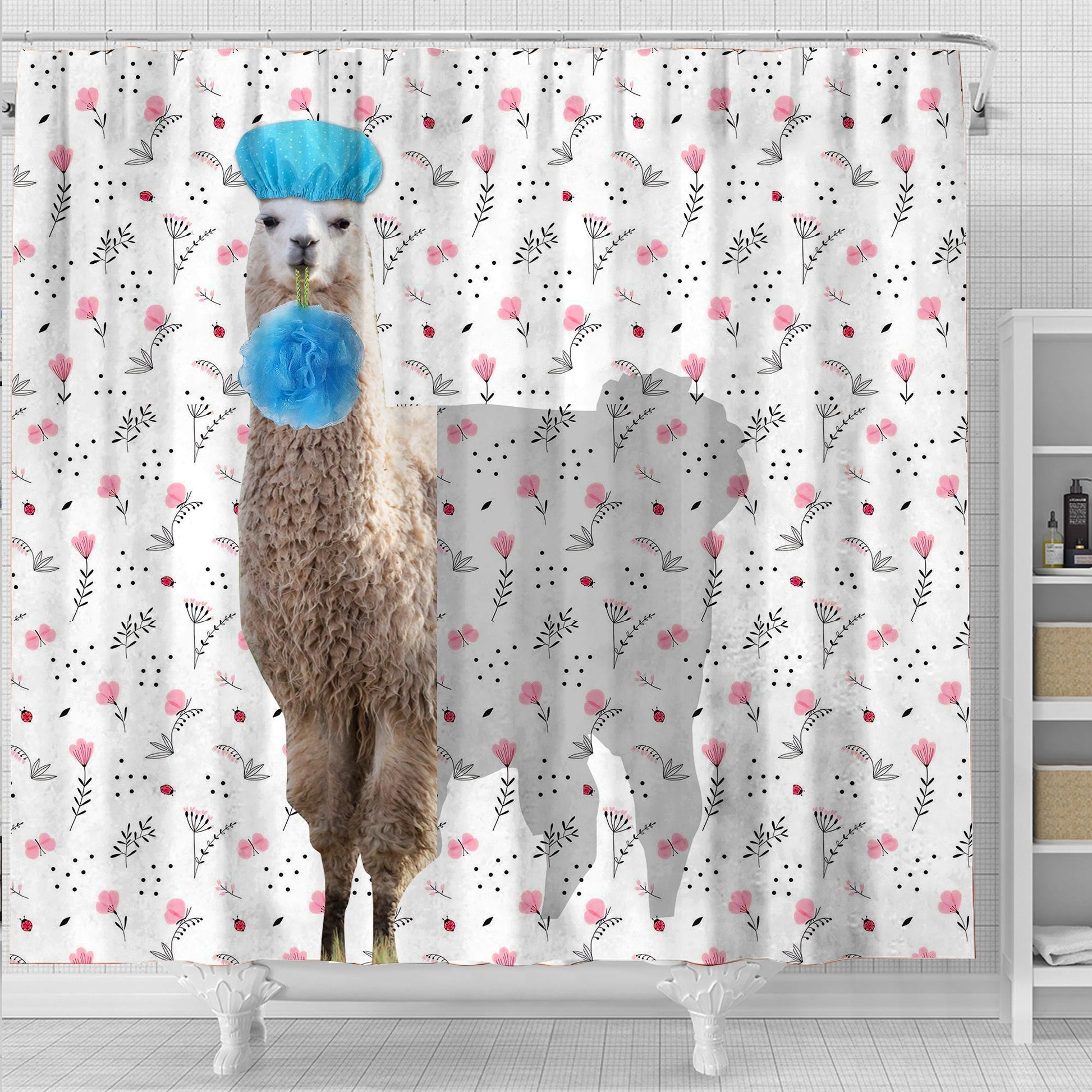 Uni Llama Flower 3D Shower Curtain