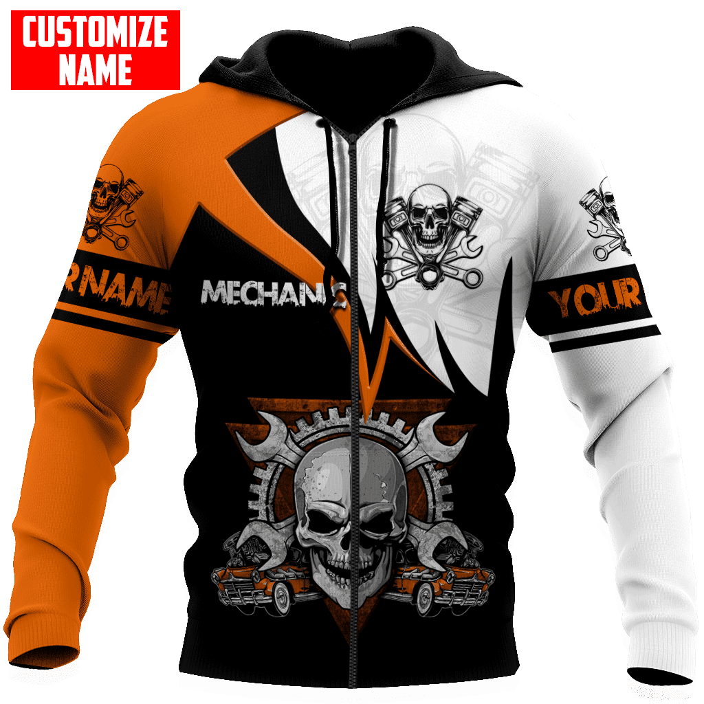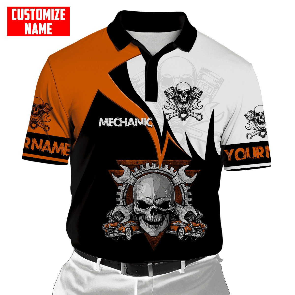 UniJames Mechanic Skull Custom Name Auto Mechanic Unisex Shirts