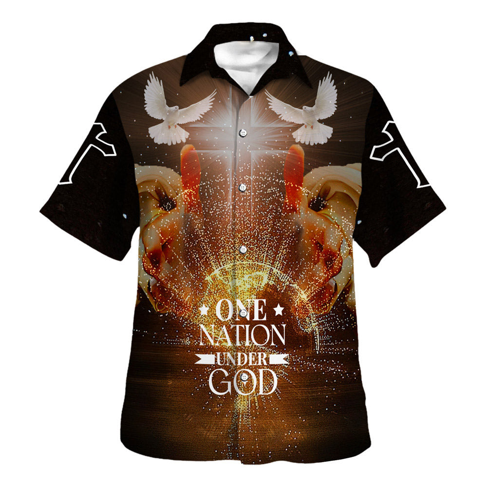 UniJames One Nation Under God Hand Of God Hawaiian Shirts For Men & Women - Christian Hawaiian Shirt - Hawaiian Summer Shirts