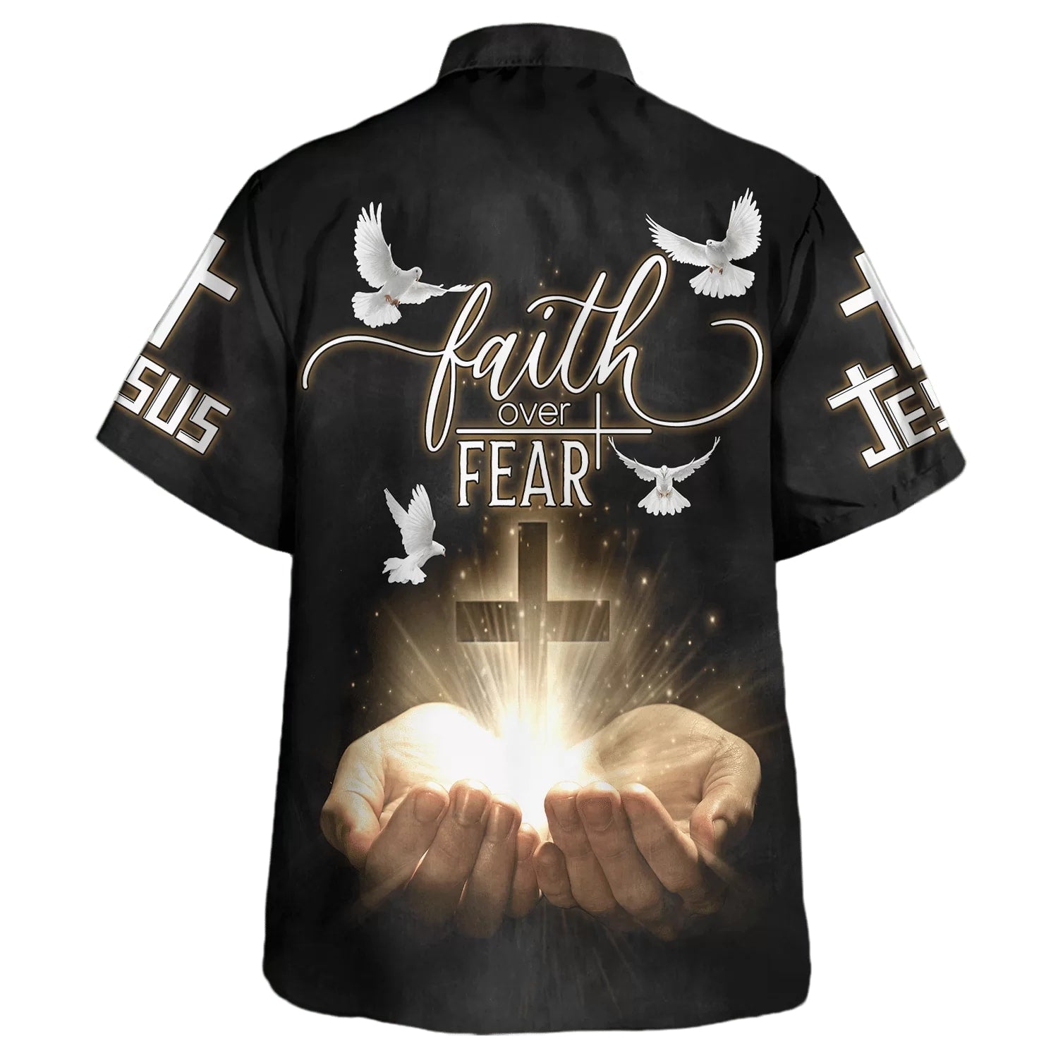 UniJames Open Hands Holding A Cross Faith Over Fear Hawaiian Shirts For Men & Women - Christian Hawaiian Shirt - Hawaiian Summer Shirts