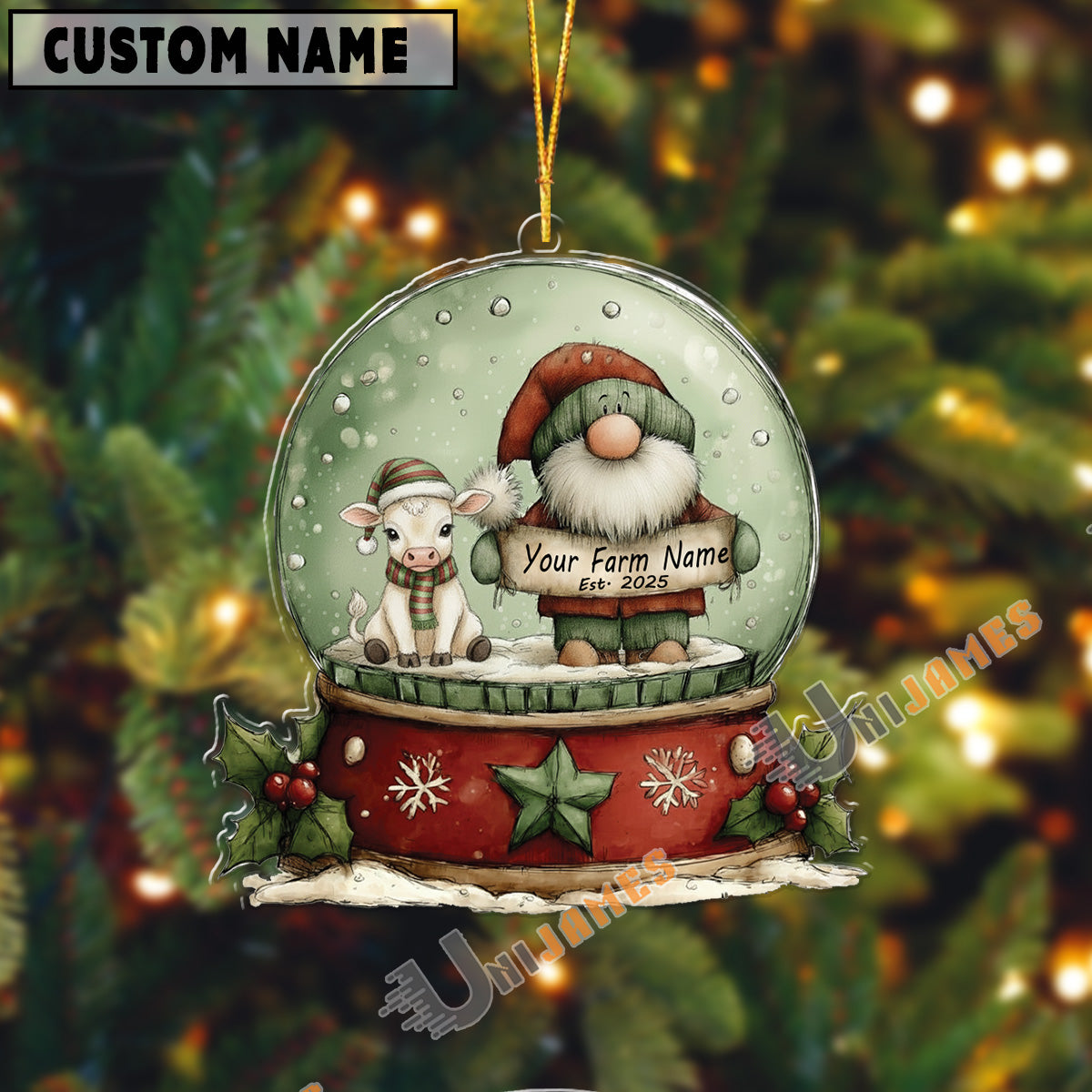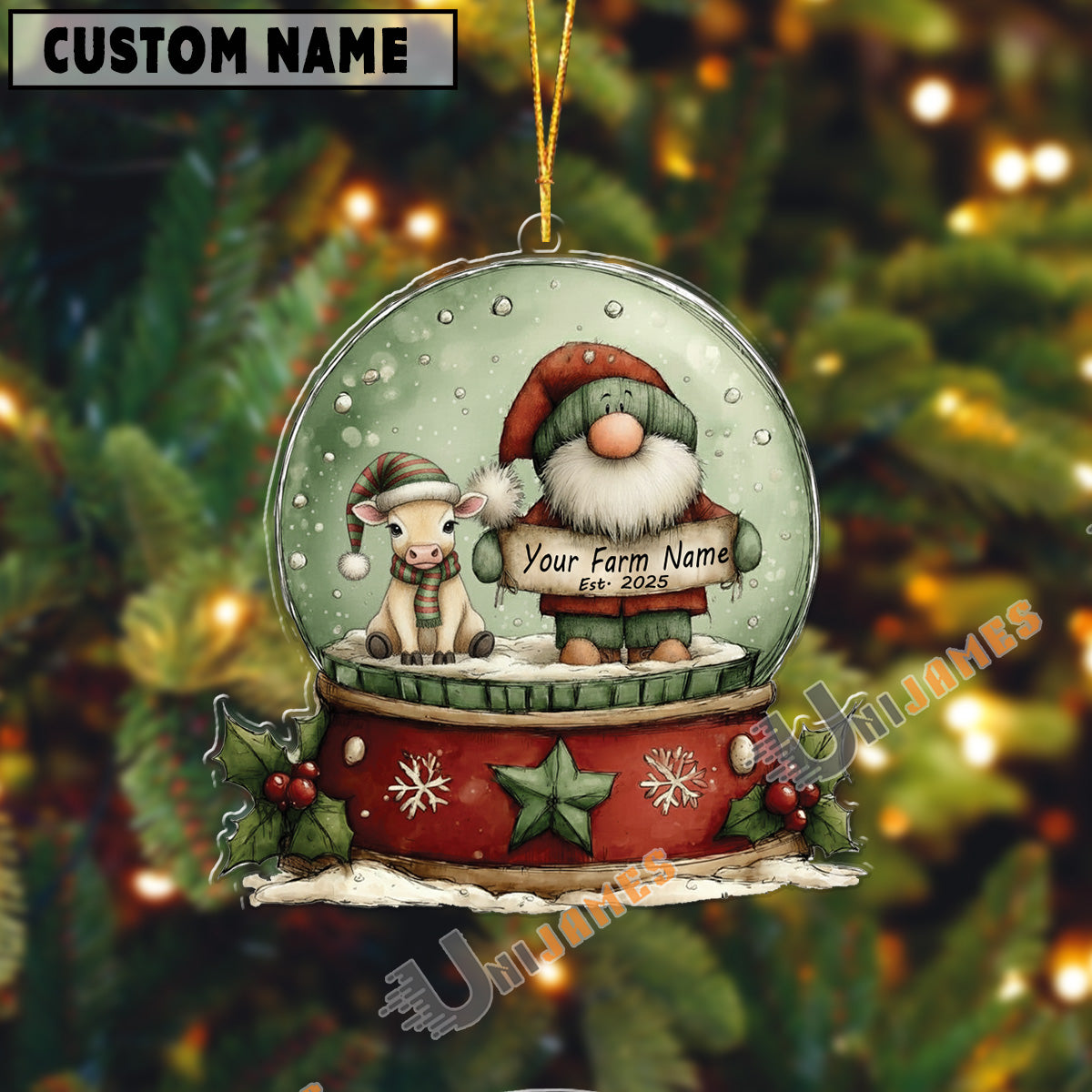 Uni Personalized Farmhouse Christmas Snow Globe Acrylic Ornament (14 Breed Options)