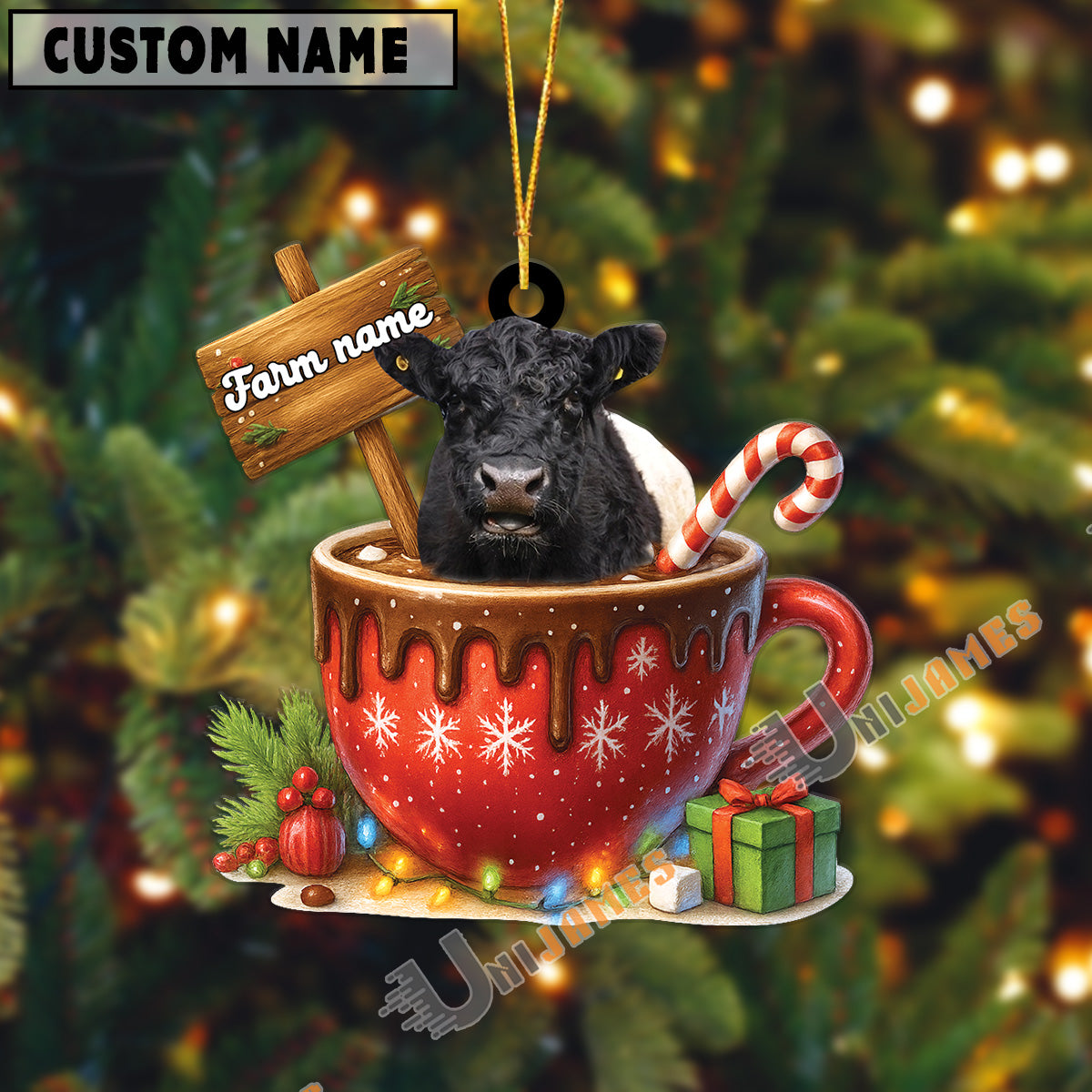 Uni Personalized Moo-ry Christmas Cocoa Mug Acrylic Ornament (14 Breed Options)