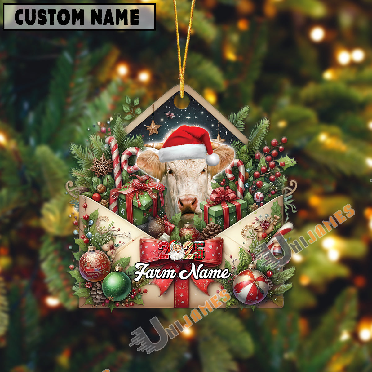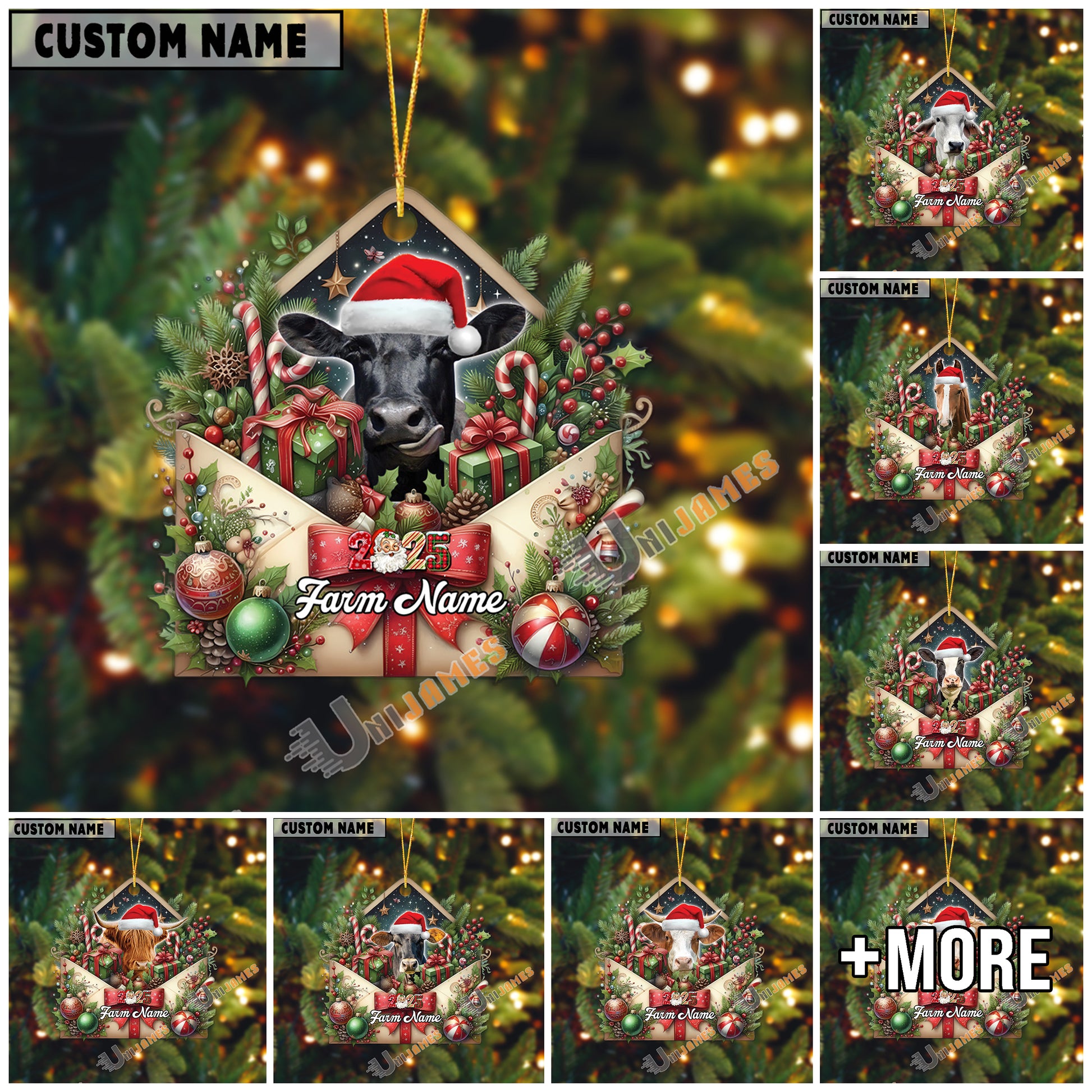 Uni Personalized Festive Cow Farm Envelope Acrylic Ornament (14 Breed Options)