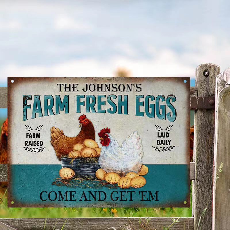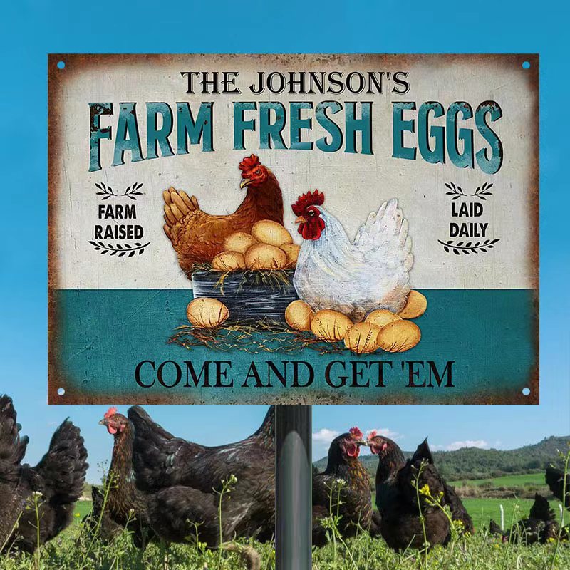 Personalized Chicken Farm Raised Laid Daily Turquoise Customized Classic Metal Signs