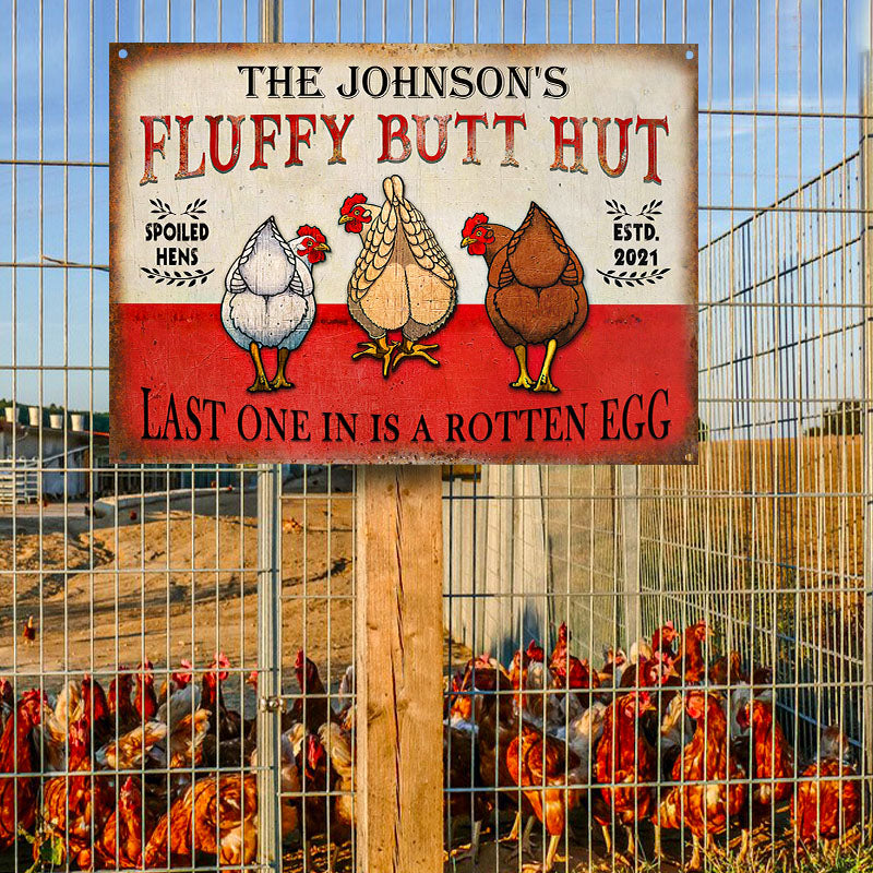Personalized Chicken Fluffy Butt Hut Nuggets Customized Classic Metal Signs