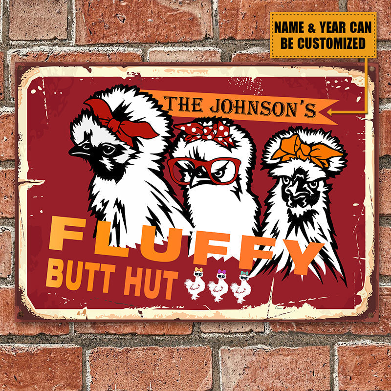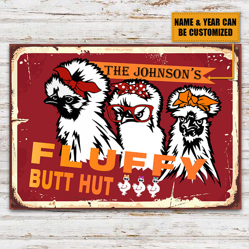 Personalized Chicken Metal Signs Fluffy Butt Hut Silkies Chicken Attention Customized Classic Metal Signs