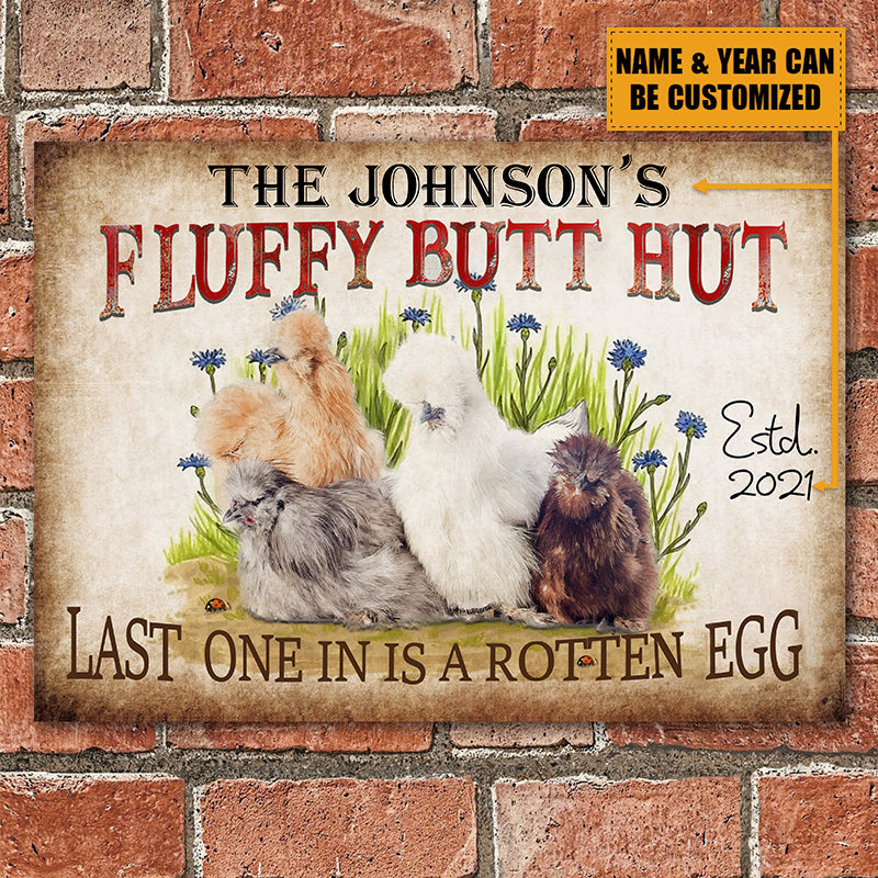 Personalized Chicken Metal Signs Fluffy Butt Hut Silkies Chicken Customized Classic Metal Signs