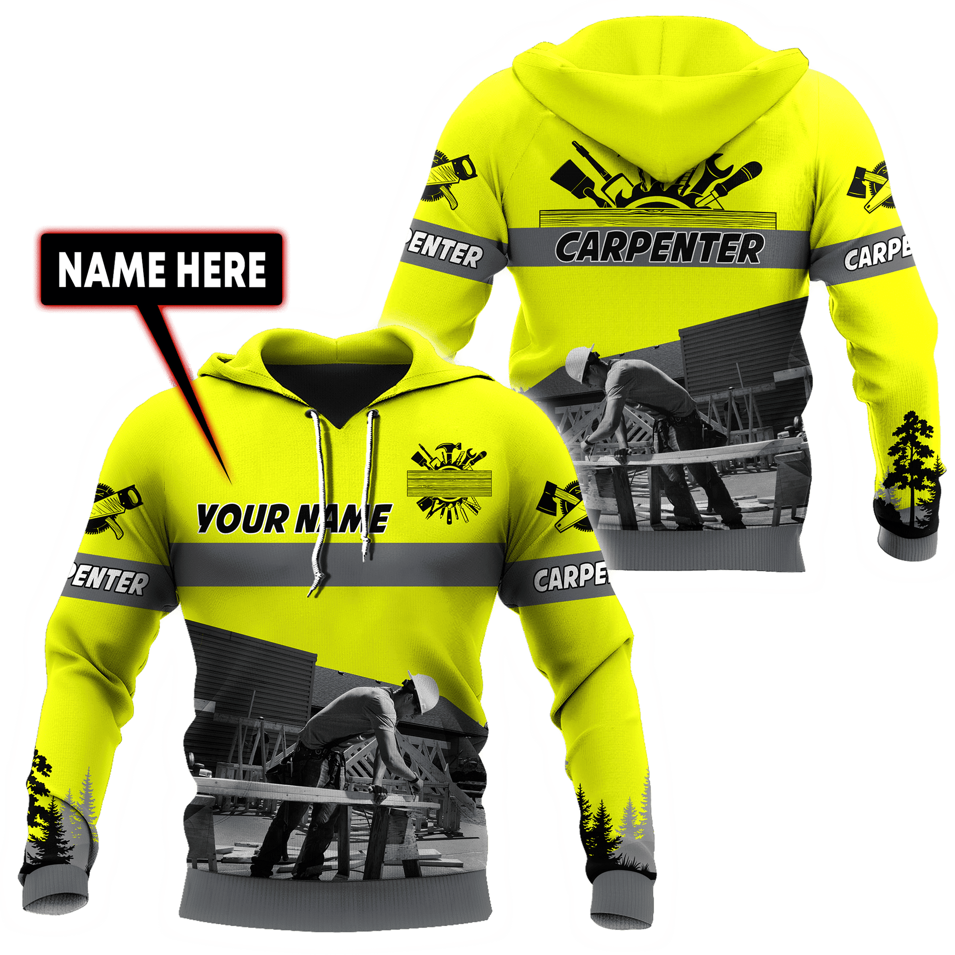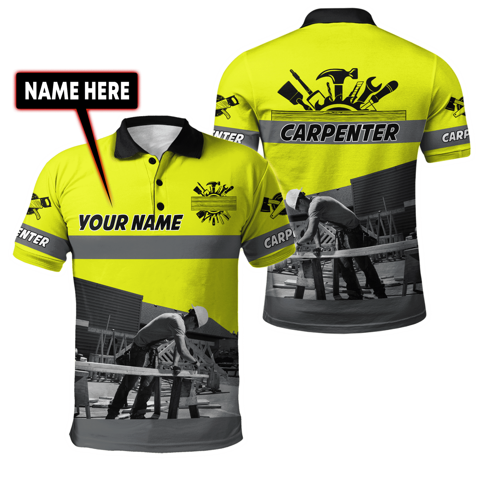 UniJames Personalized Name Carpenter Unisex Shirts Yellow