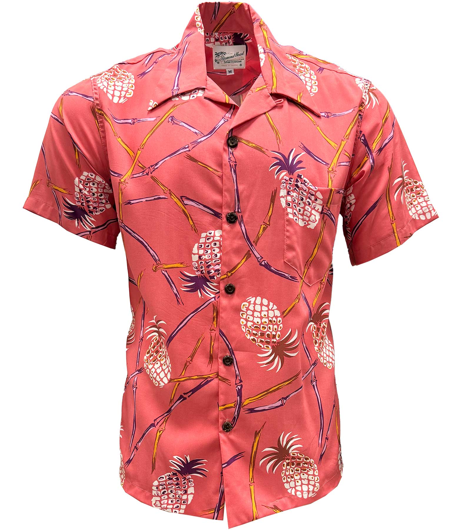 UniJames Retro Pineapple Bamboo - Coral Short Sleeve Hawaiian Shirt