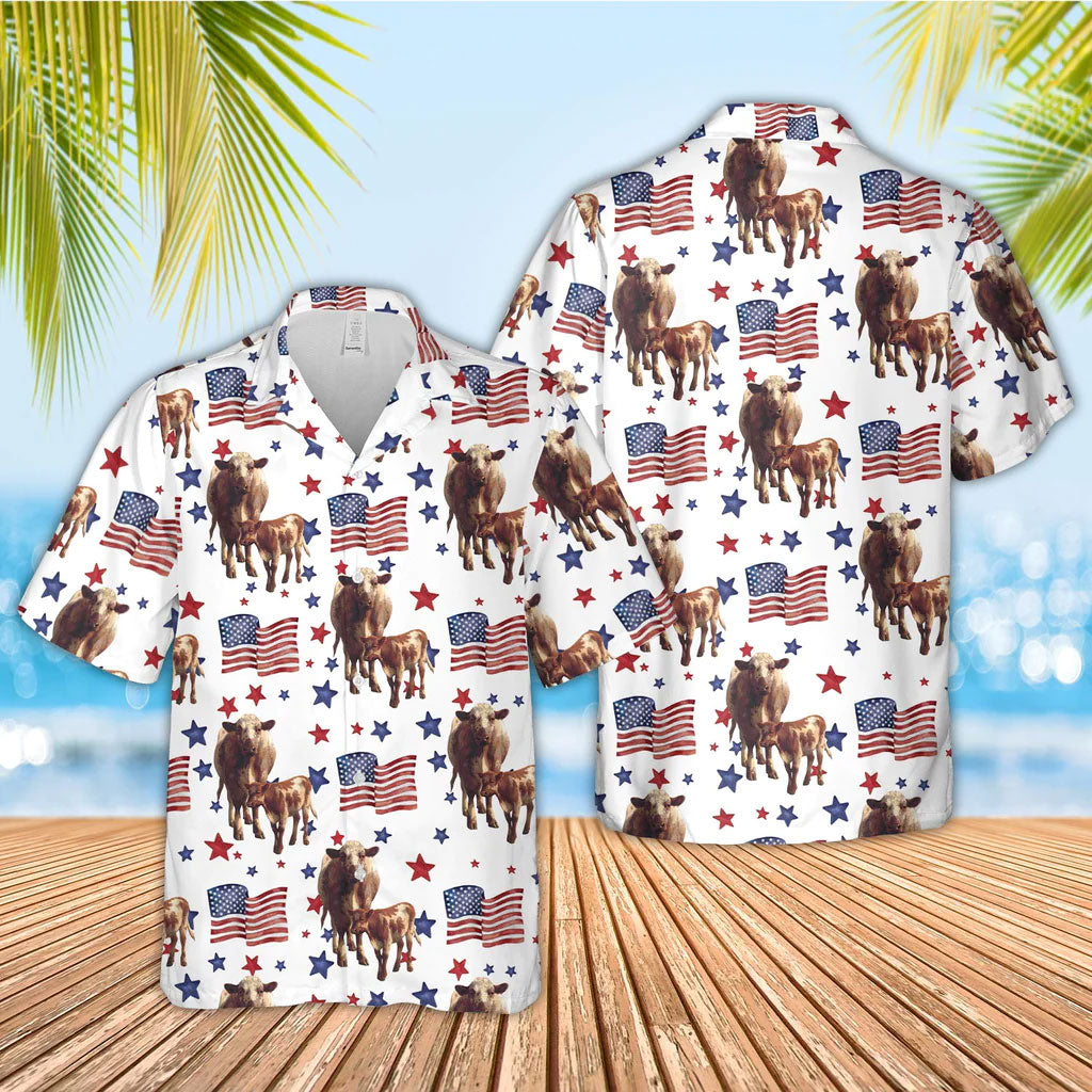Unique Shorthorn American Flag Pattern Hawaiian Shirt