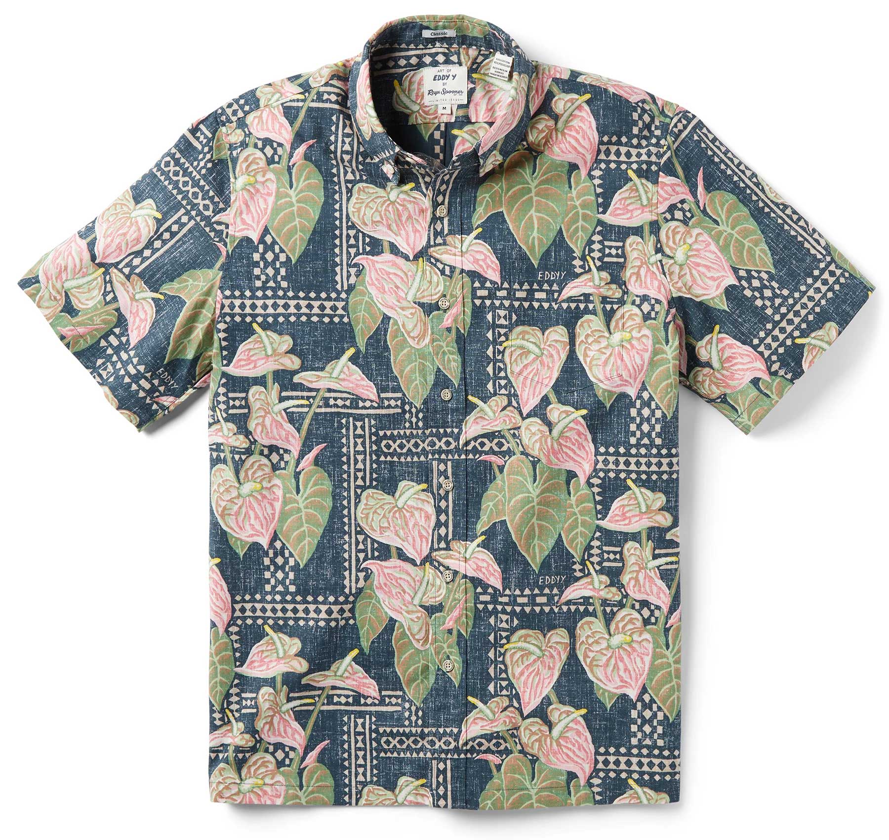 UniJames Tapa Anthurium - Black Short Sleeve Hawaiian Shirt