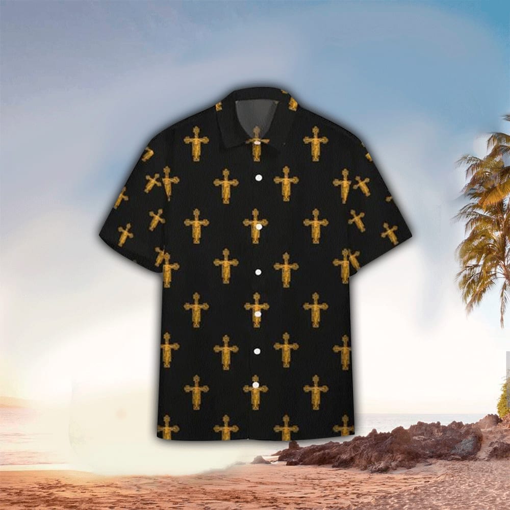 UniJames The Jesus Cross Pattern Black Hawaiian Shirt - Christian Hawaiian Shirts For Men & Women