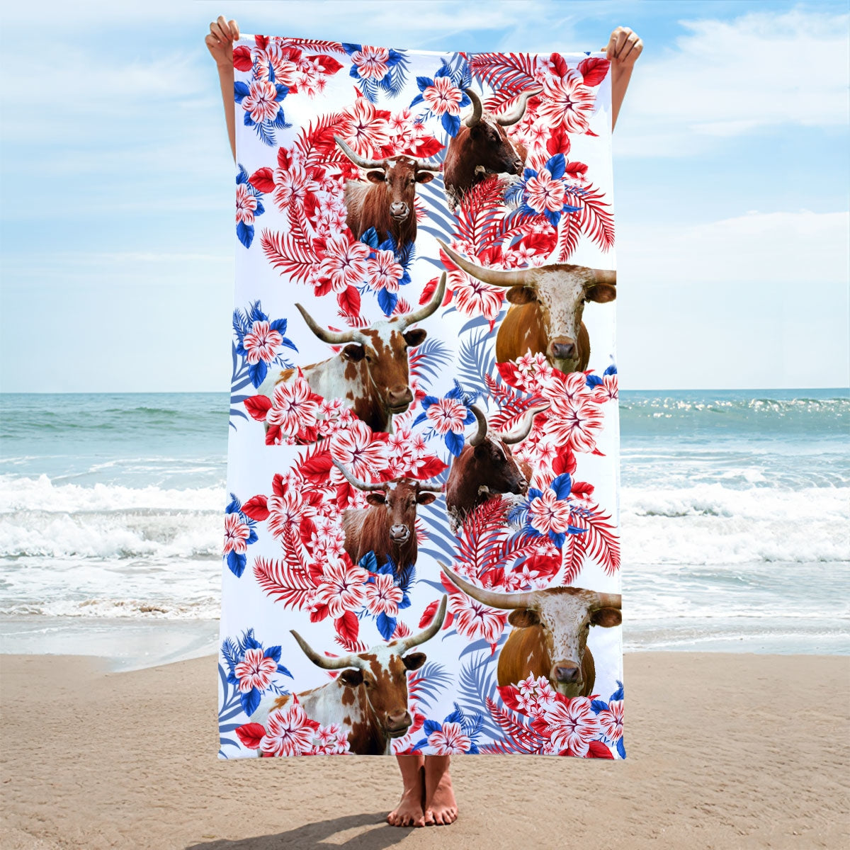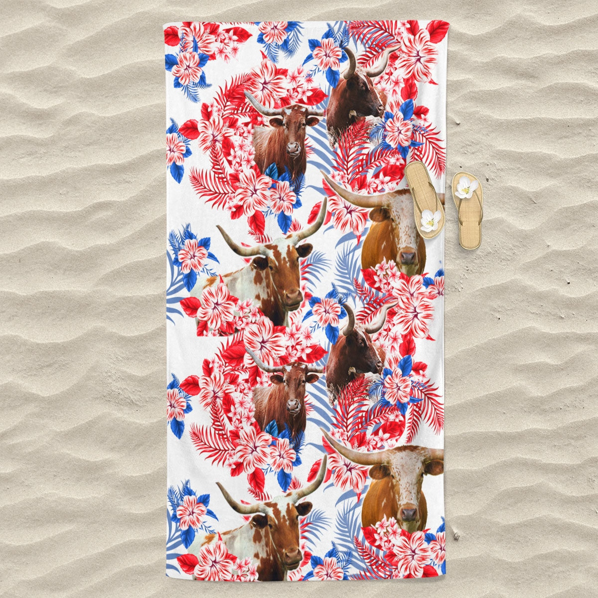 Tx Longhorn Cattle Hawaiian Inspiration Beach Towel
