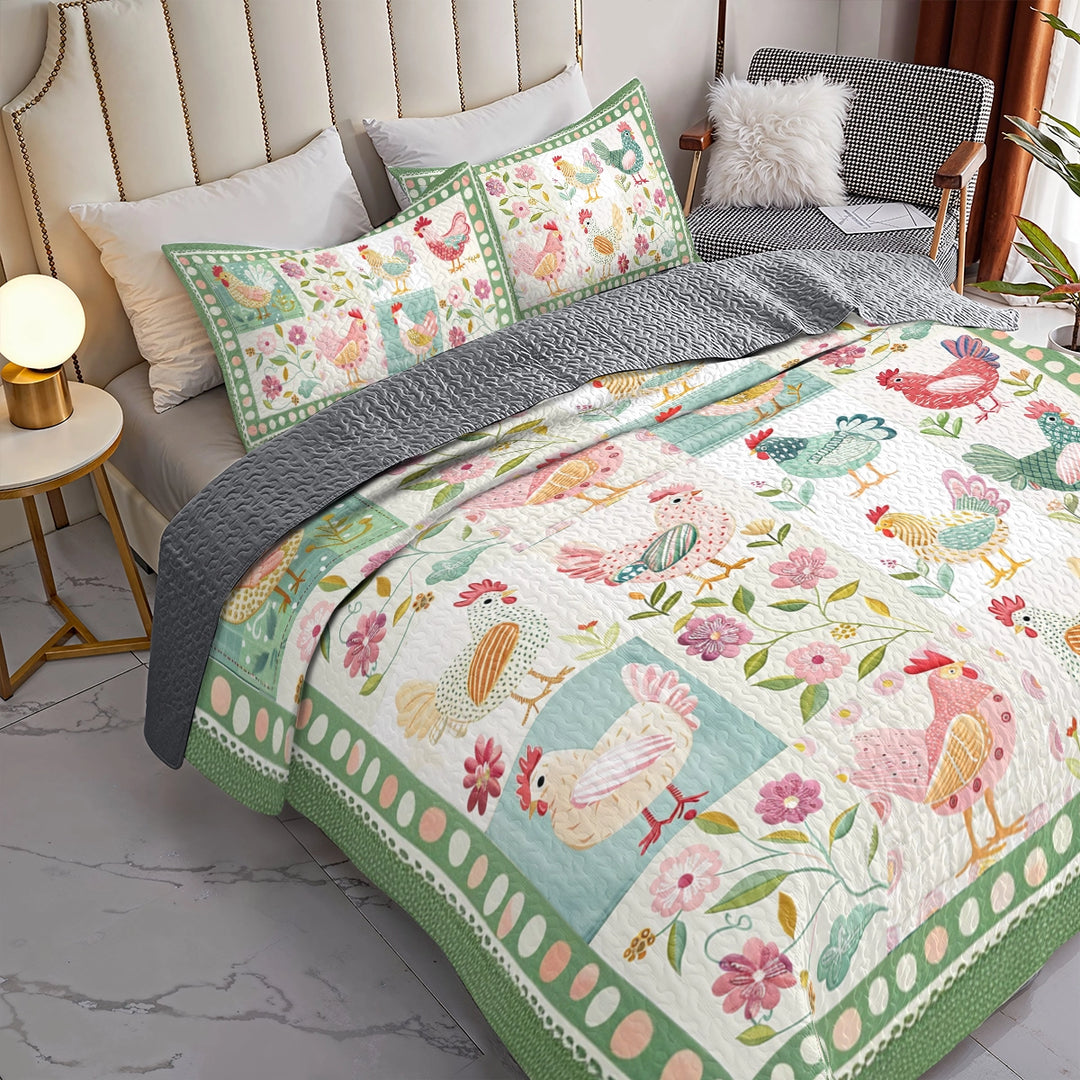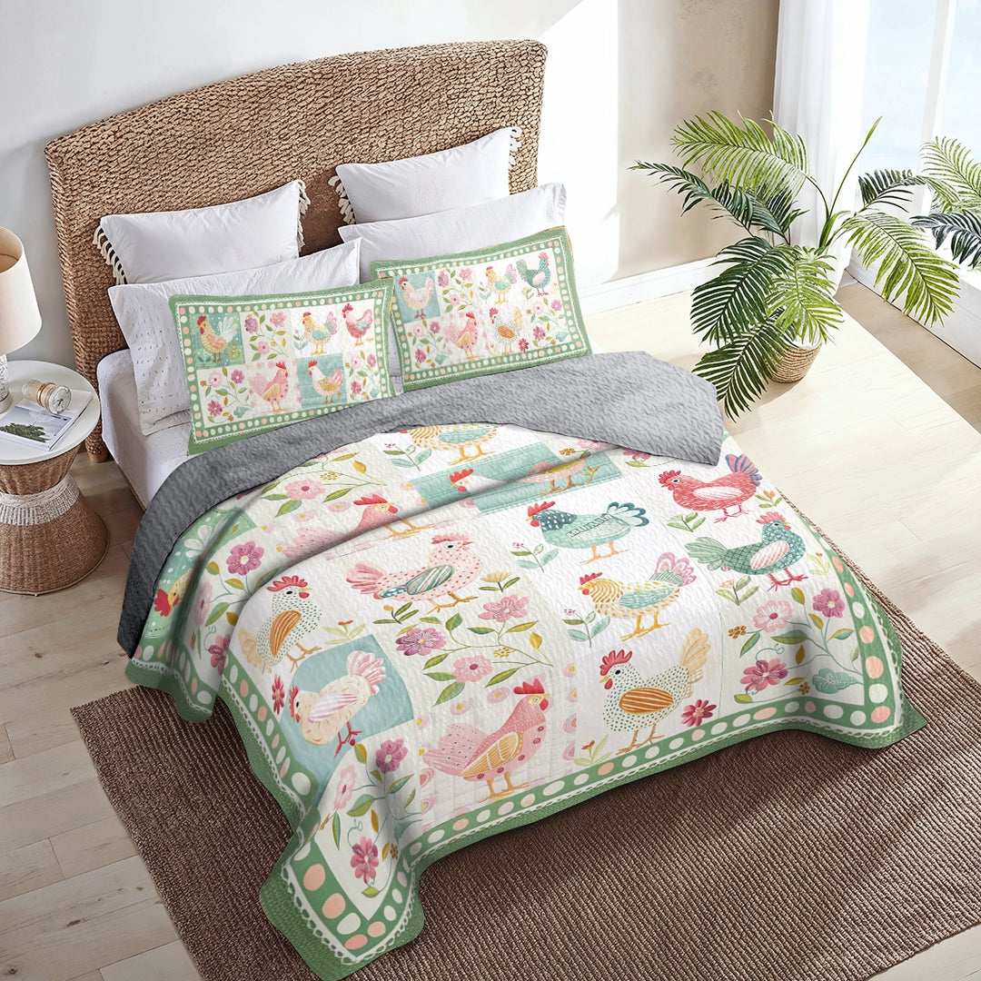 Uni All Season Quilt 3-Piece Set Chicken Springtime Hens
