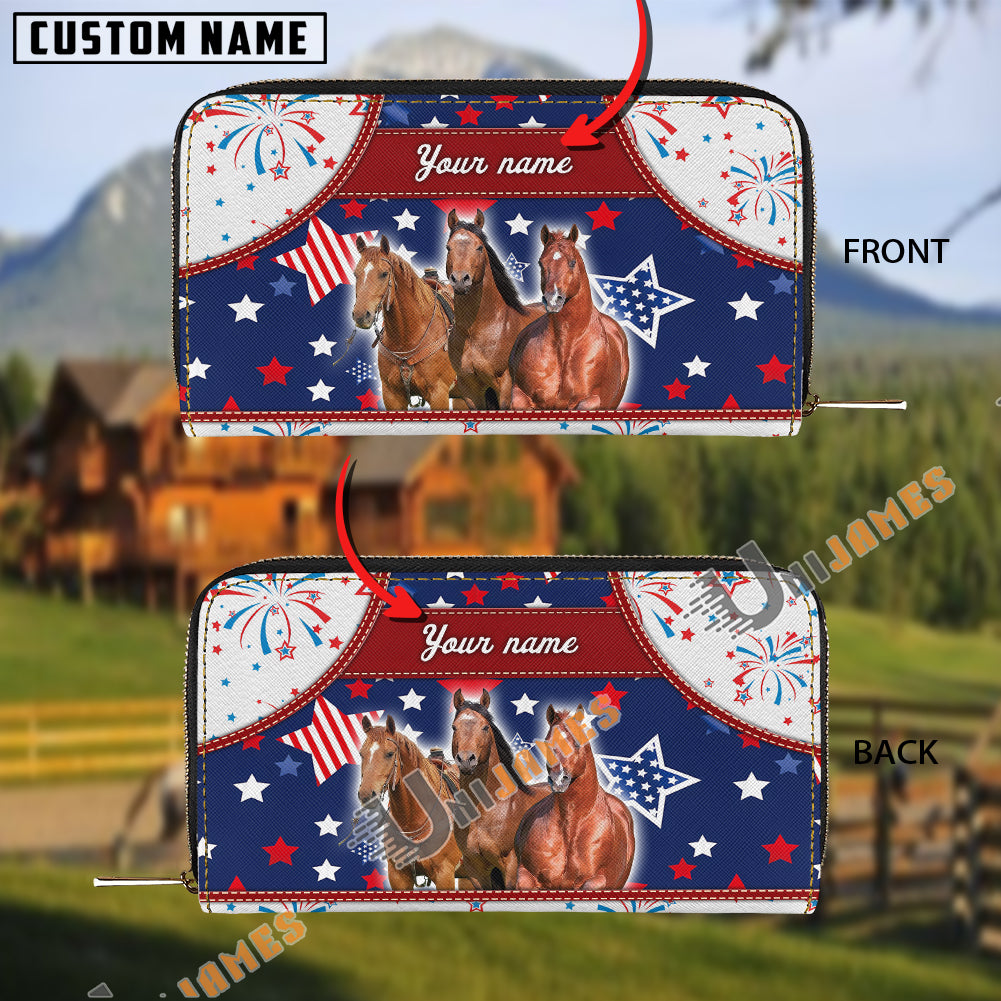 Uni American Quarter Horse America Lover Custom Name 3D Leather Clutch