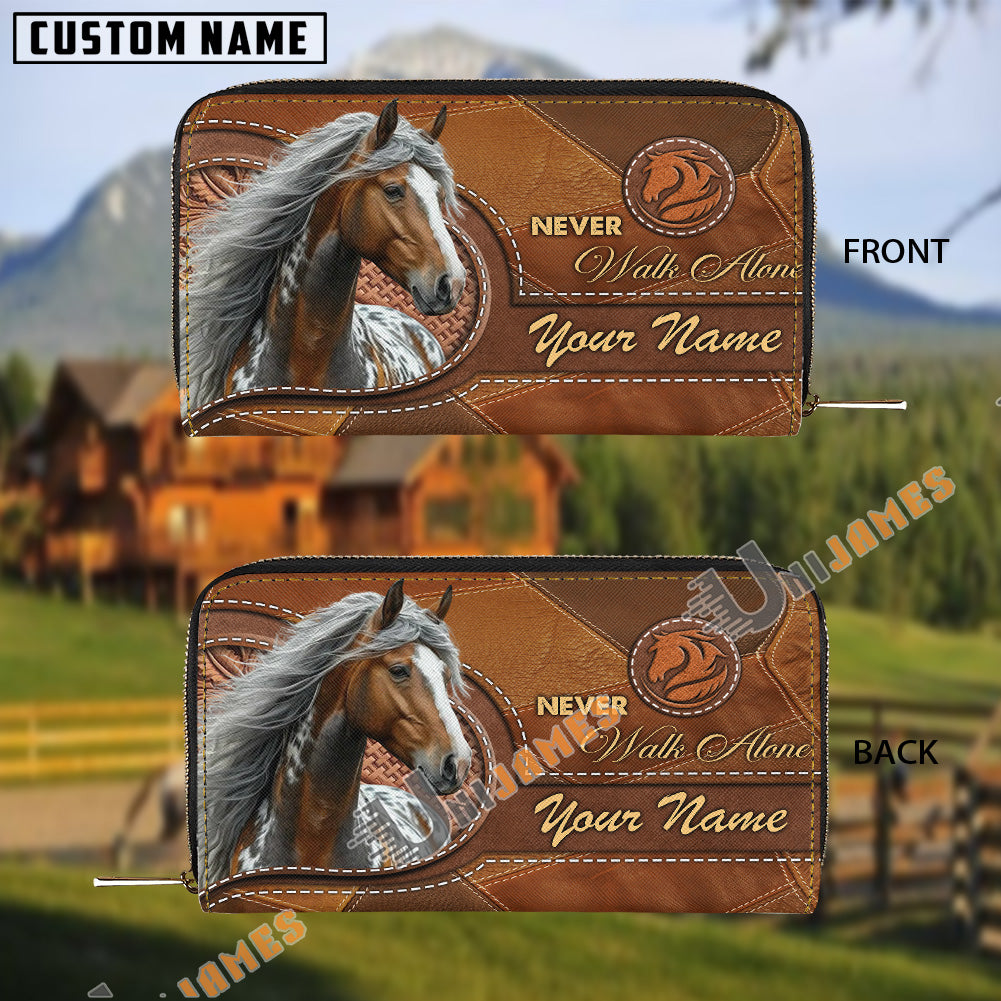 Uni Appaloosa Never Walk Alone Custom Name 3D Leather Clutch