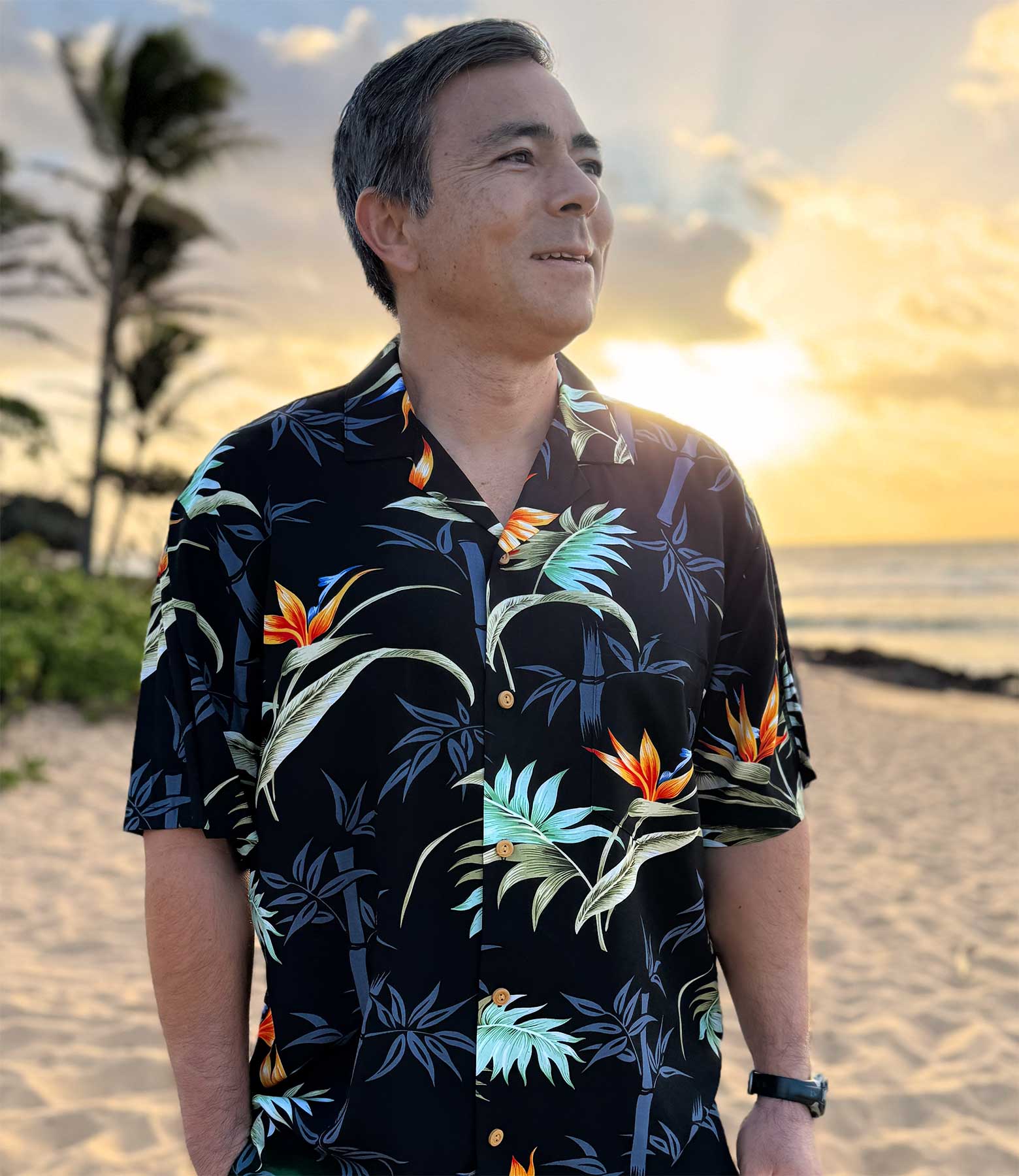 Uni Bamboo Paradise Black Aloha Shirt Short Sleeve Shirt Vacation Hawaiian Outdoor Vacation