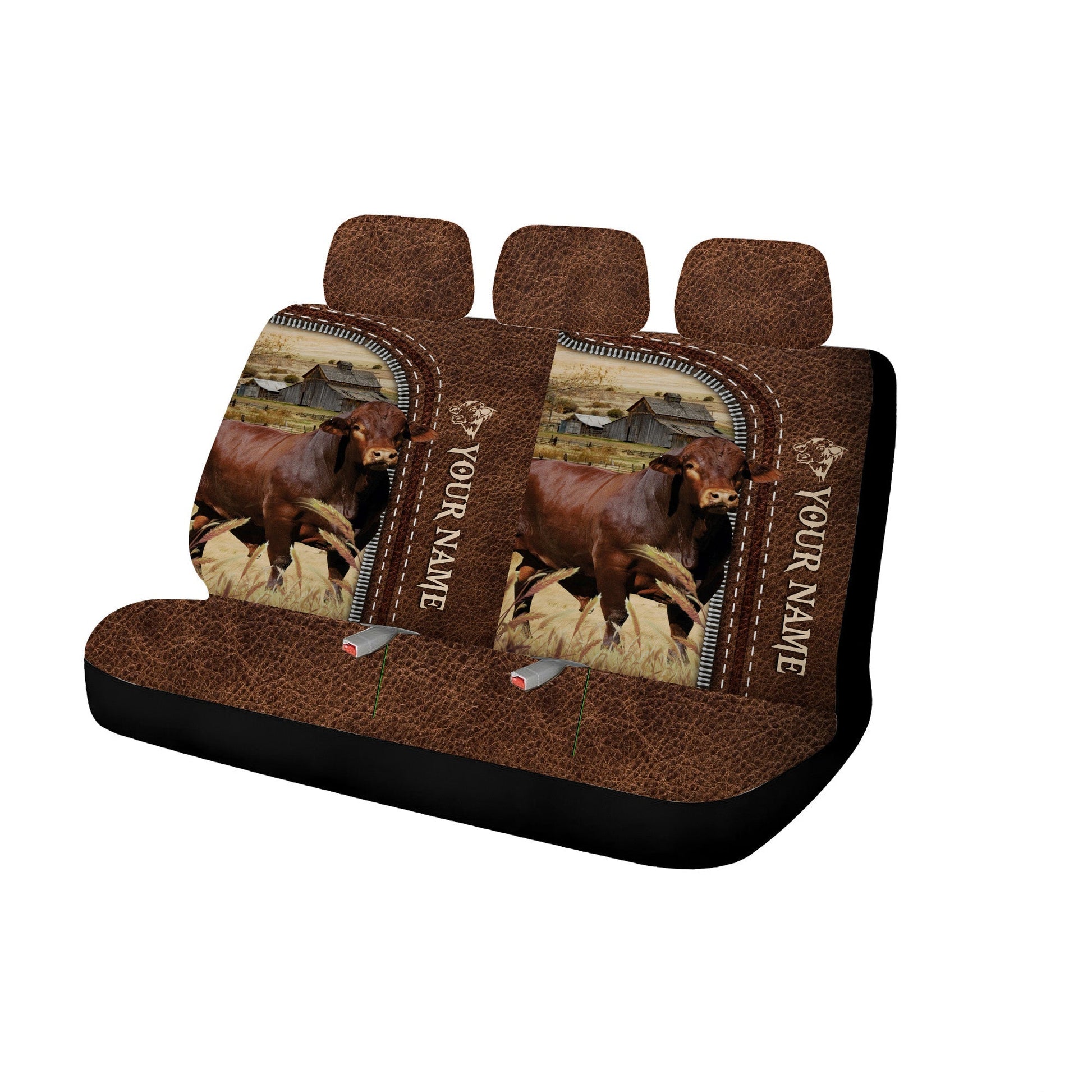 Uni Beefmaster Personalized Name Leather Pattern Car Seat Covers Universal Fit (2Pcs)