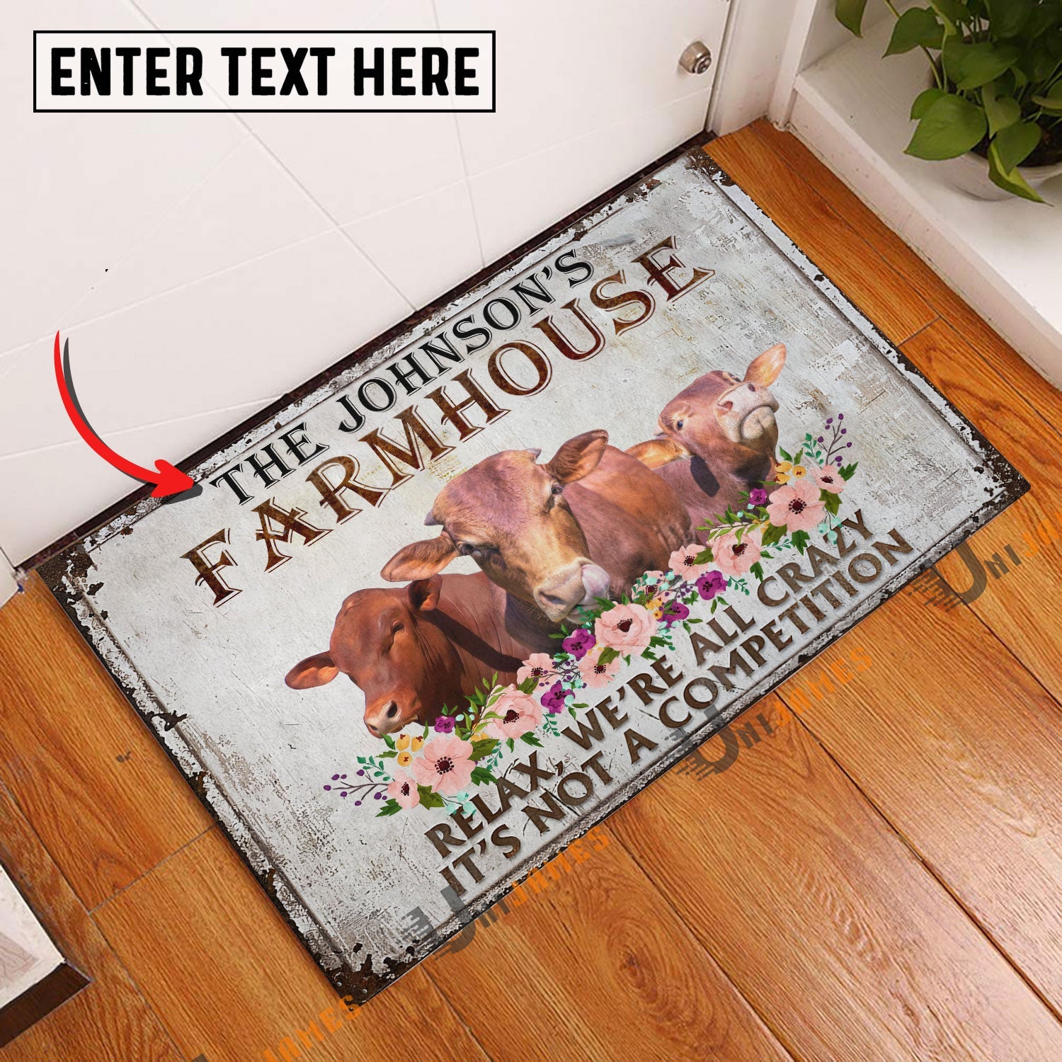 Uni Beefmaster Relax Cattle Farm Personalized Name Doormat