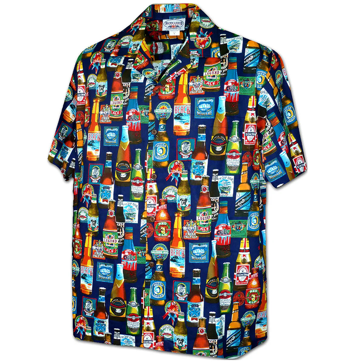 Uni Beer Blast Navy Hawaiian Shirt Aloha Shirt Short Sleeve Shirt Vacation Hawaiian Outdoor Vacation Hawaiian Shirt