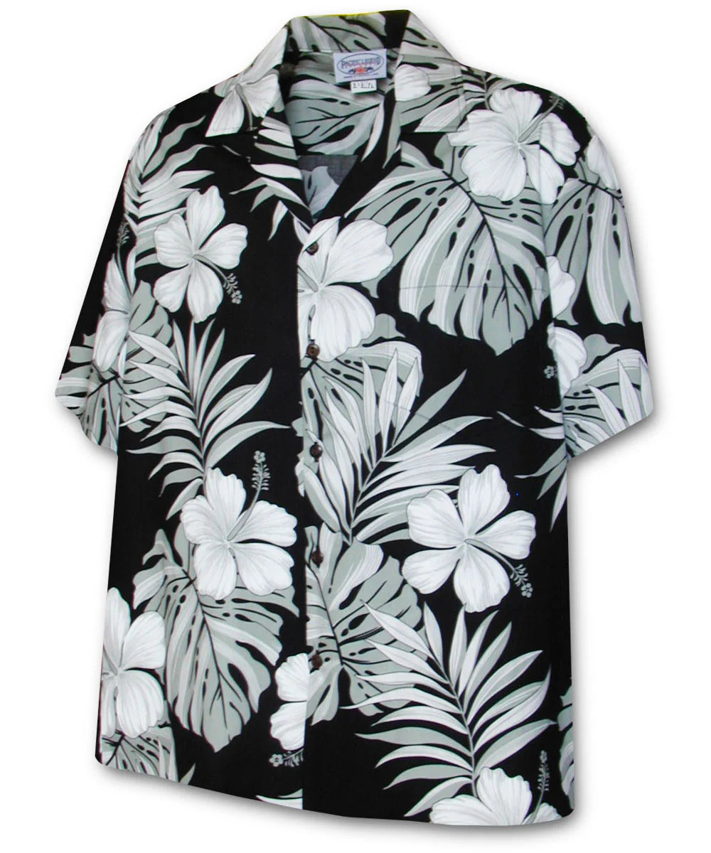 Uni Big Hibiscus Black Hawaiian Shirt Aloha Shirt Short Sleeve Pocket Shirt Vacation Hawaiian Outdoor Vacation Hawaiian Shirt