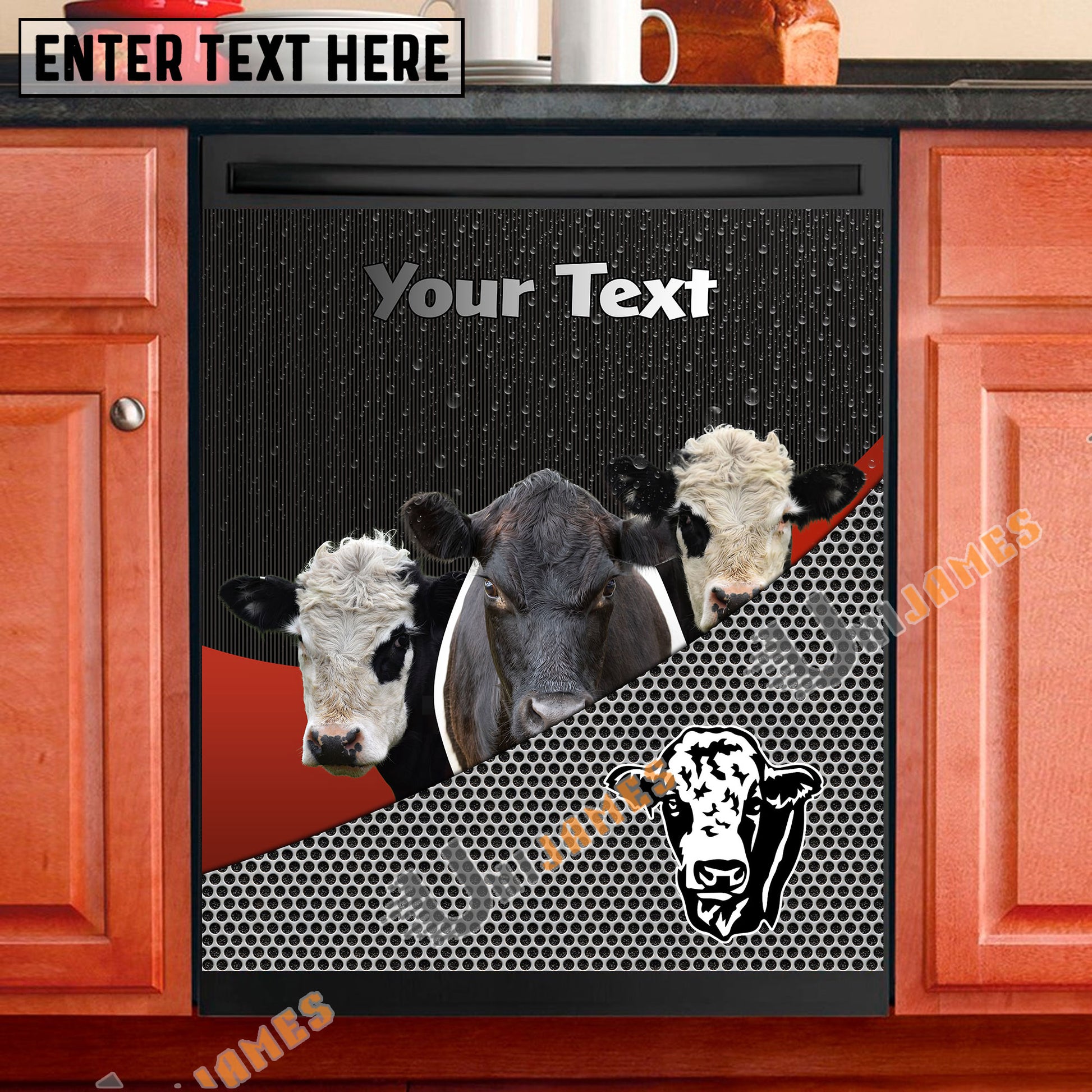 Uni Belted Galloway Cattle Metal Pattern Custom Name Dishwasher Door Cover
