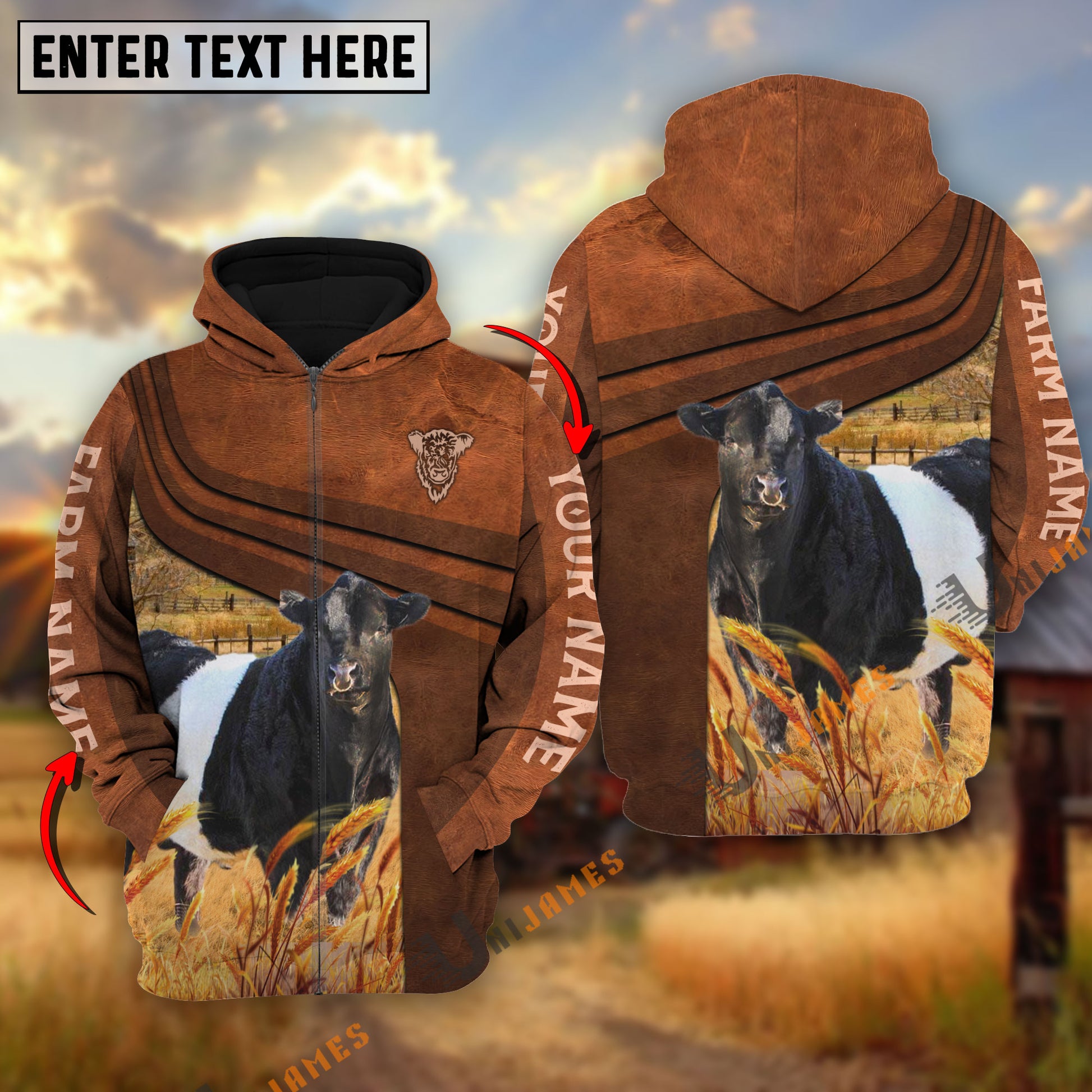 Uni Belted Galloway Cross Line Personalized Name, Farm Name 3D Hoodie