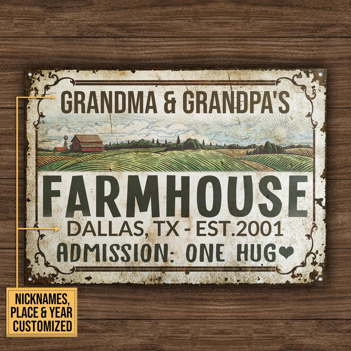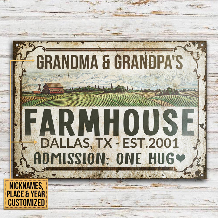 uni Big Farm Farmhouse One Hug Rectangle Metal Sign Custom Name Place Year