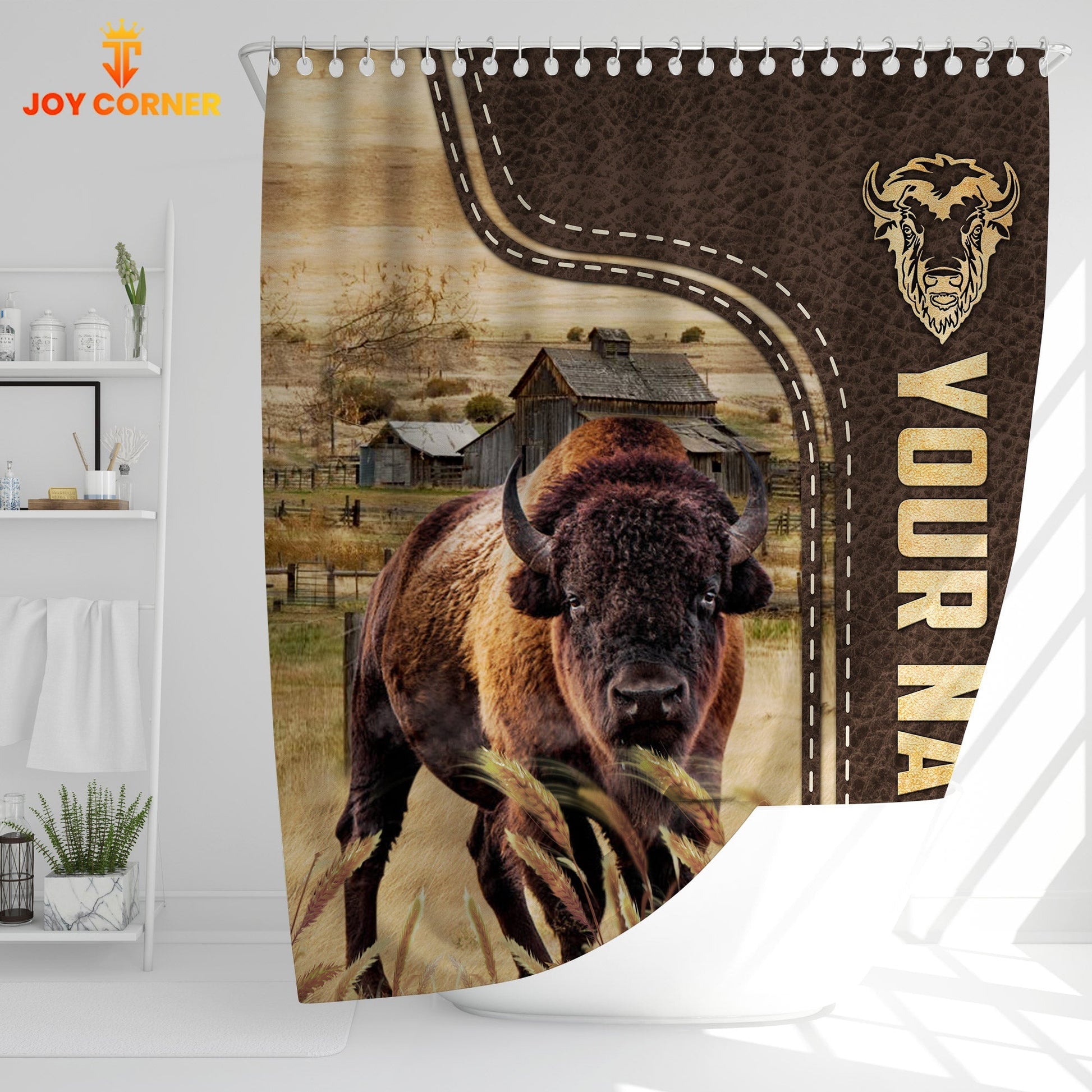 Uni Bison Leather Pattern Custom Name Shower Curtain