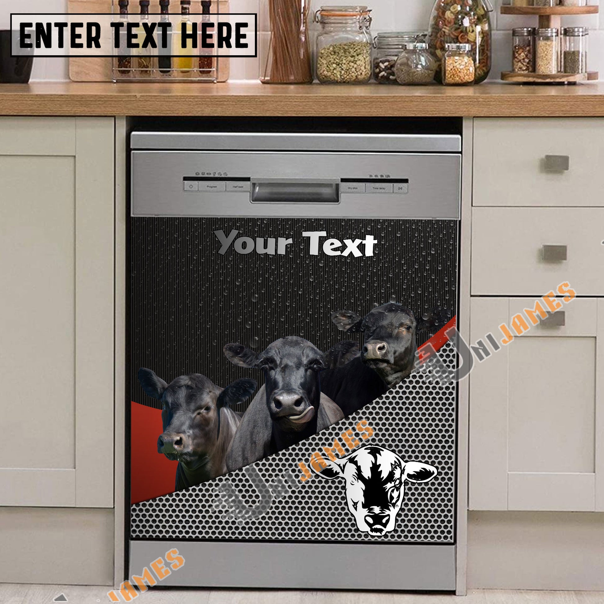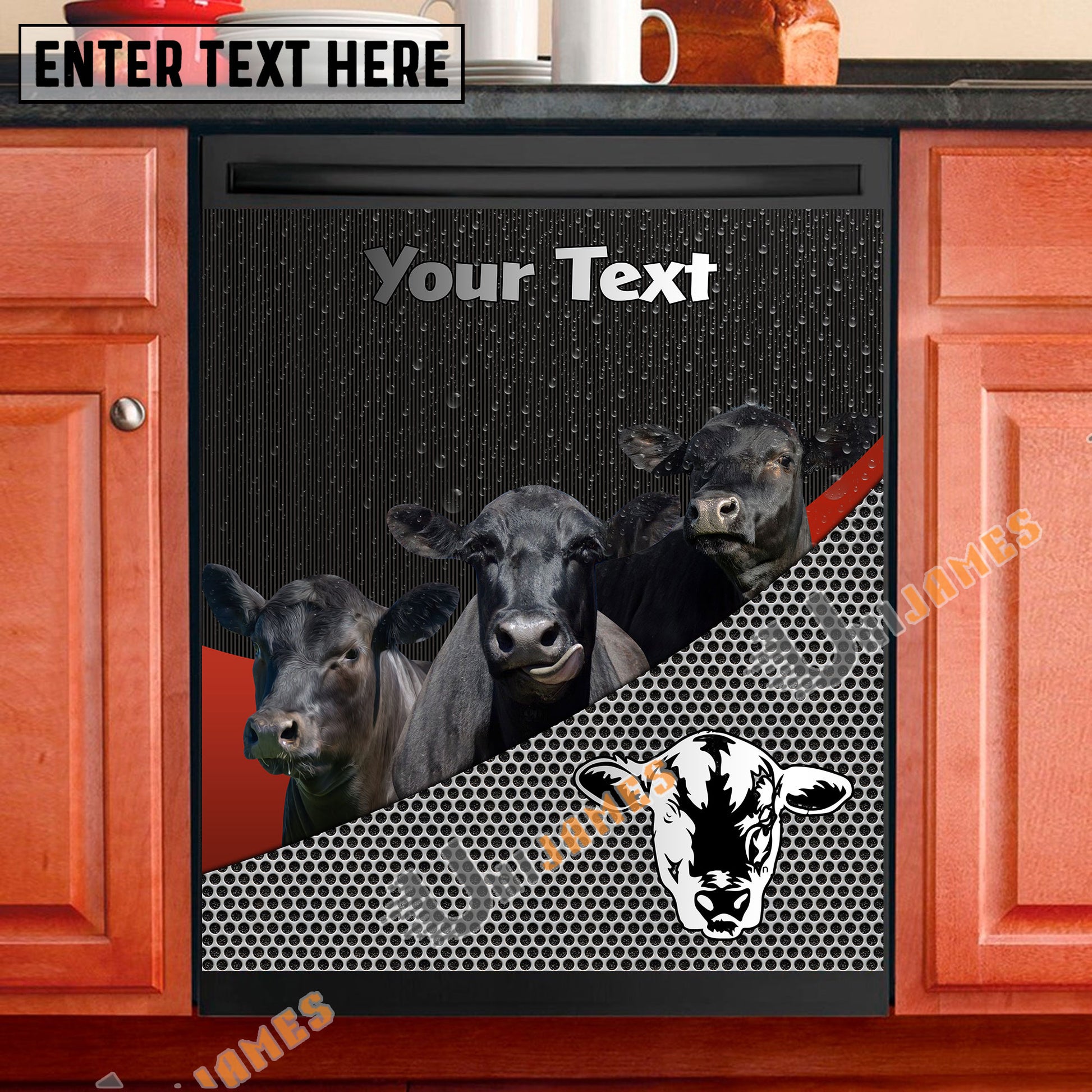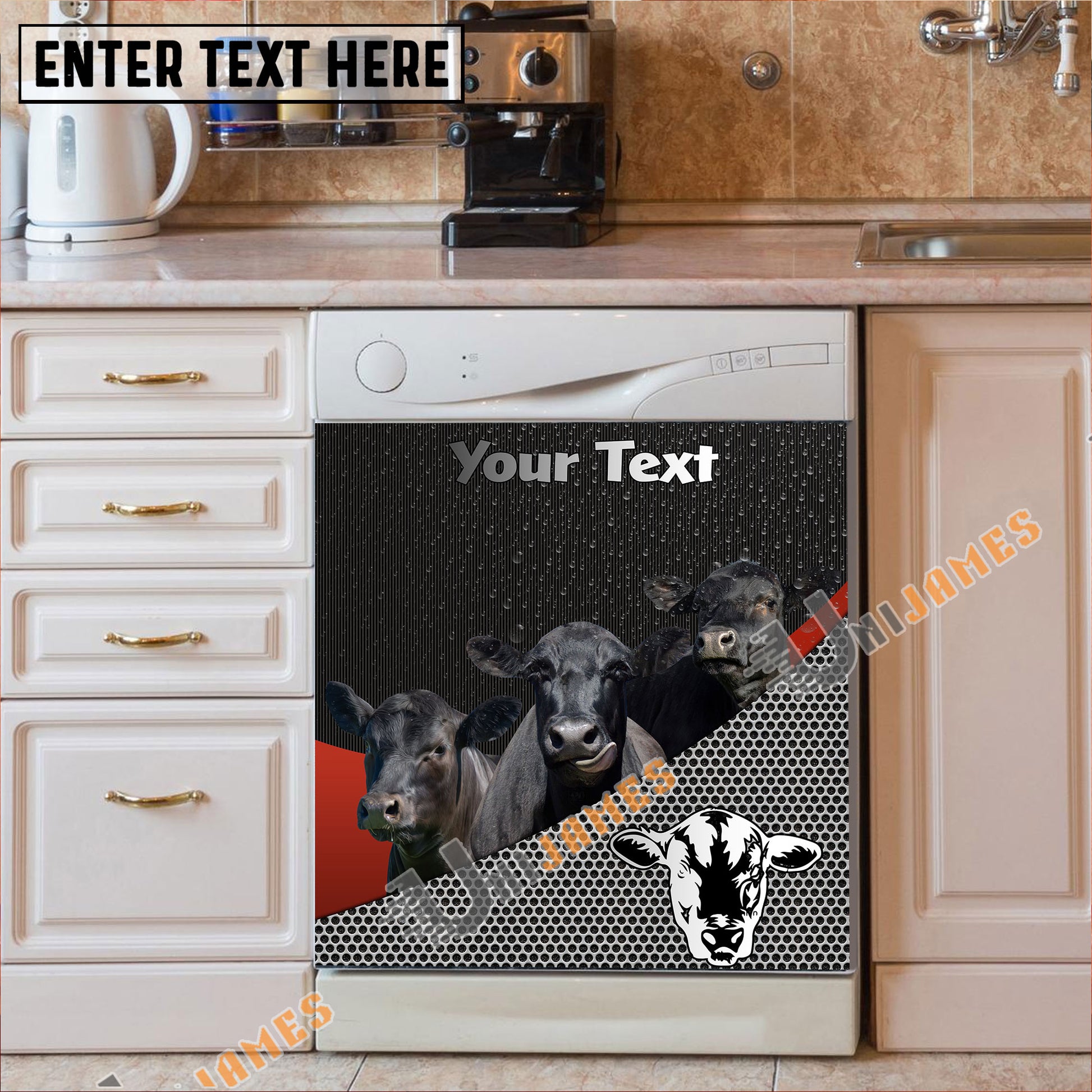 Uni Black Angus Cattle Metal Pattern Custom Name Dishwasher Door Cover