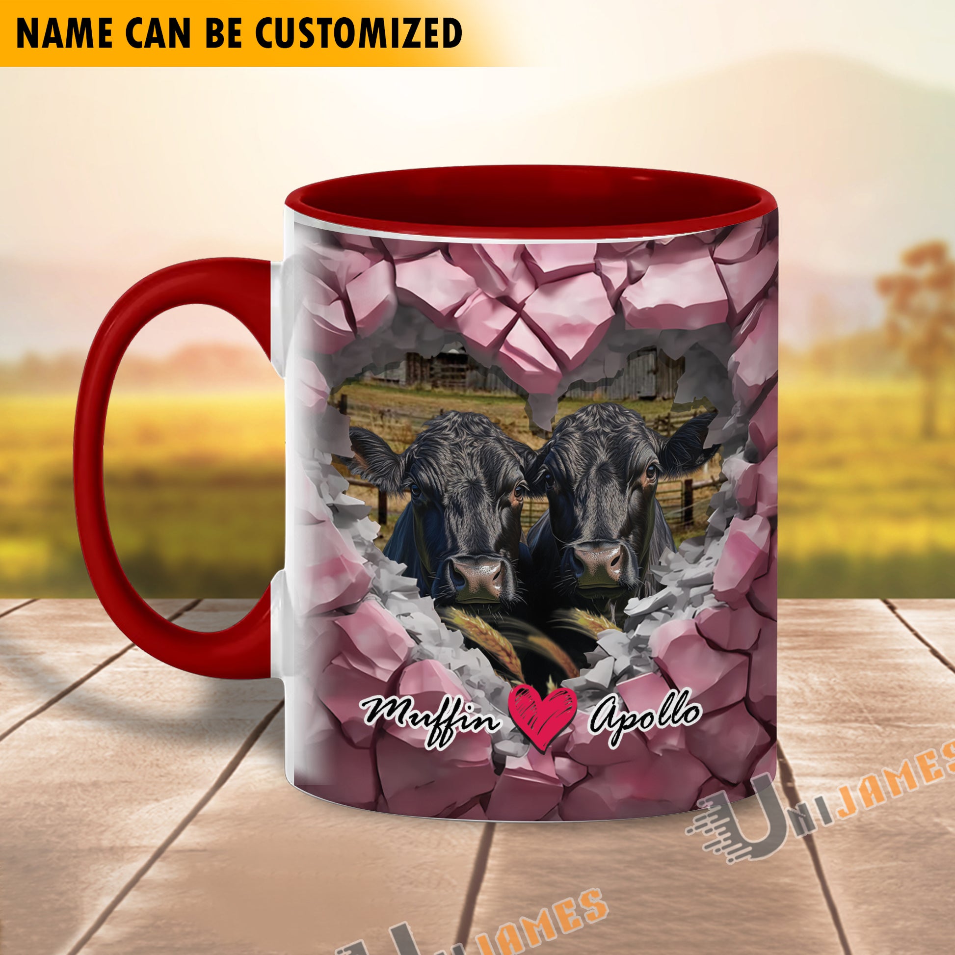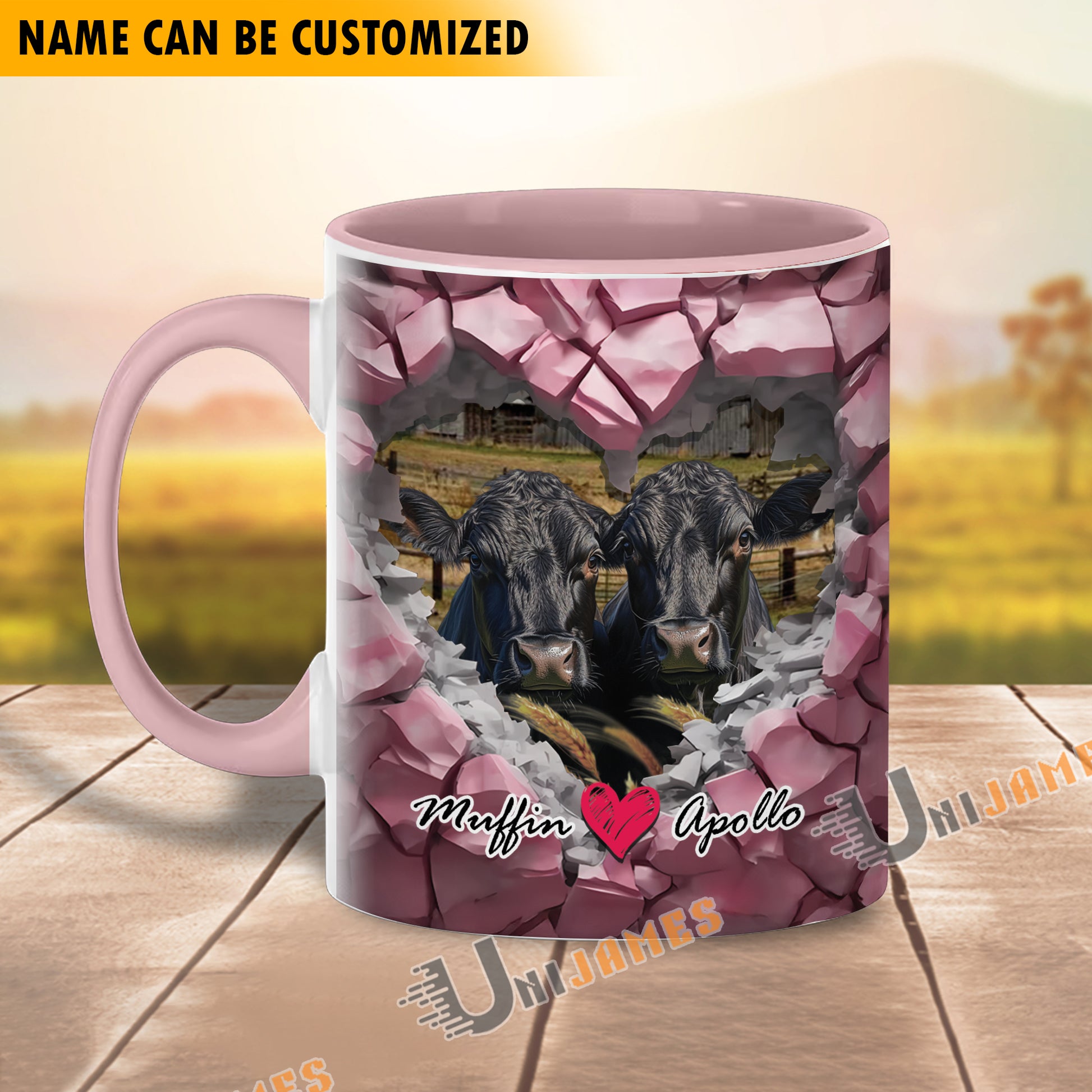 Uni Black Angus Couple Personalized Name Two Tone Mug