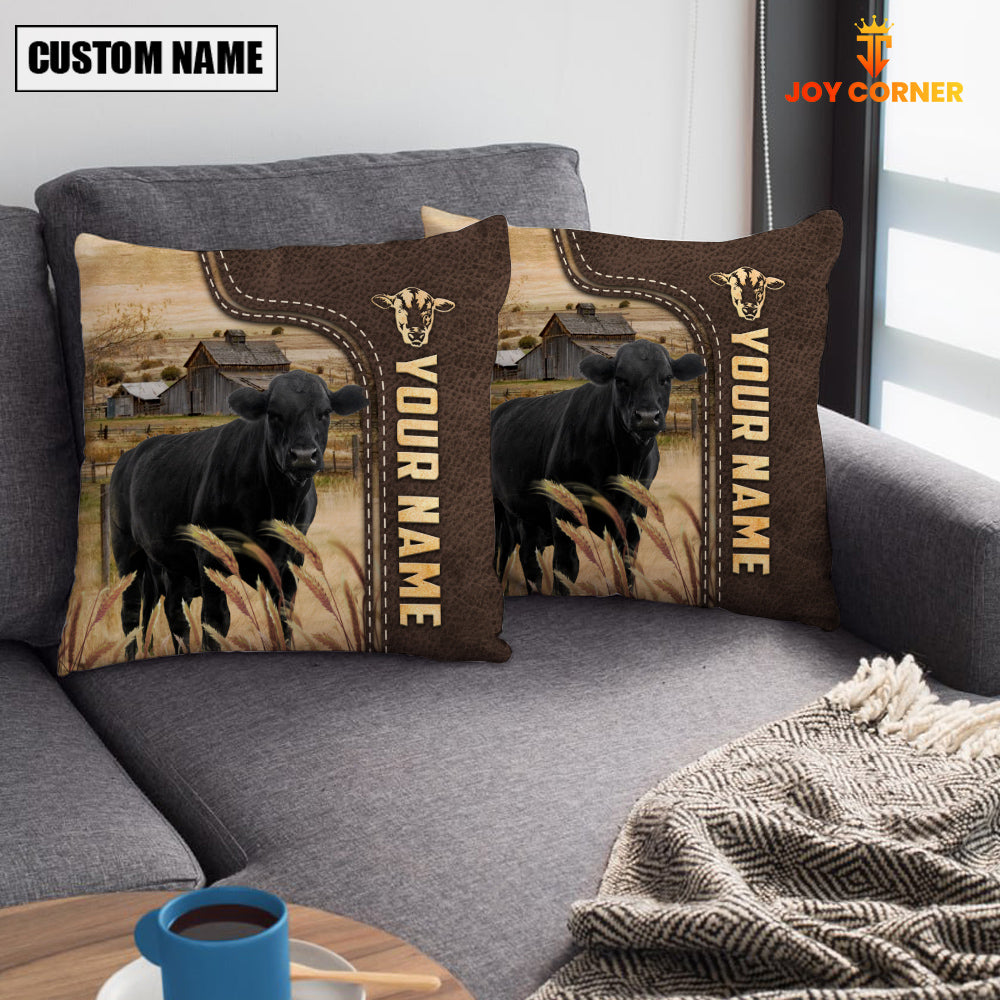 Uni Black Angus Custom Name Leather Pattern Pillow Case