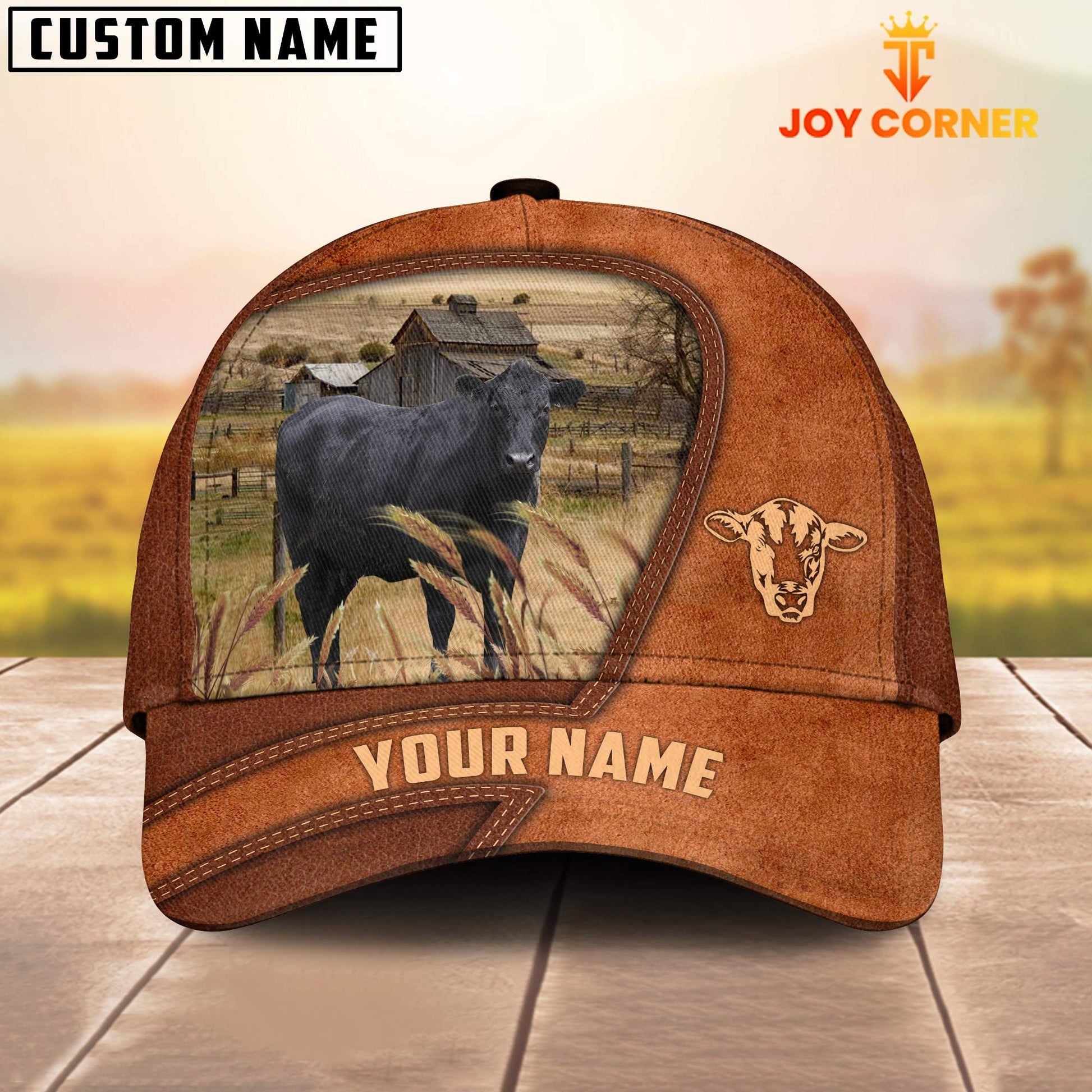 Uni Black Angus Customized Name Brown Leather Pattern Cap