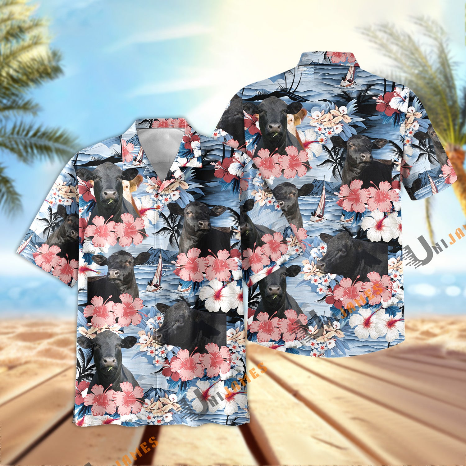 Uni Black Angus Flower Farming 3D Hawaiian Shirt