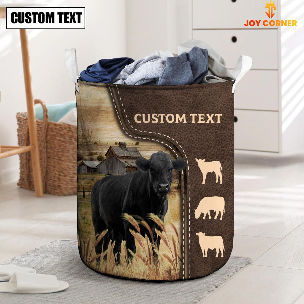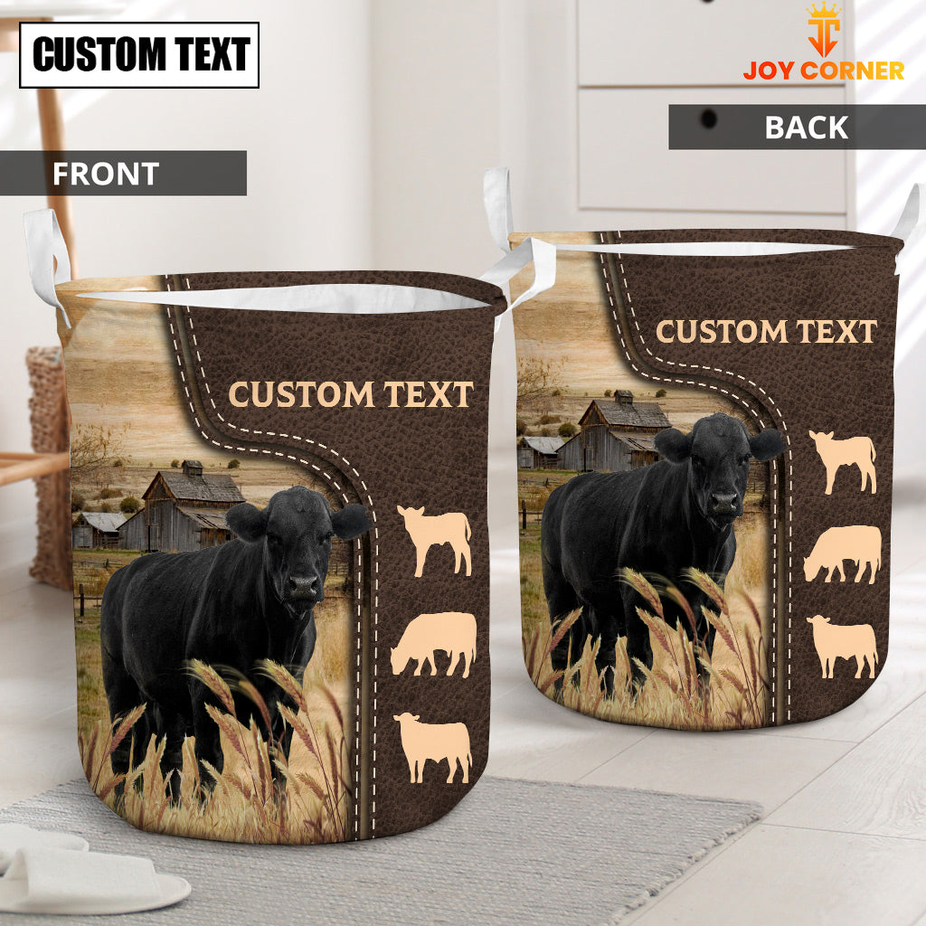 Uni Black Angus Custom Name Leather Pattern Laundry Basket